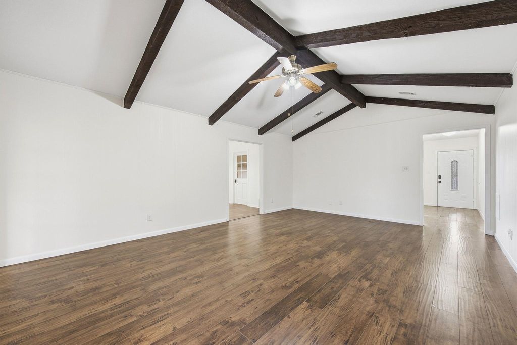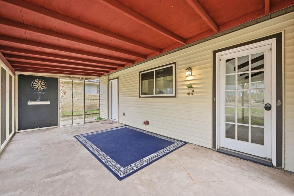 Classic ranch-style gem blends charm with thoughtful updates in a highly desirable Austin location. You will love the home's inviting curb appeal with welcoming covered front porch and beautiful mature Texas pecan tree. Inside, the functional layout suits modern living with ease. The traditionally formal living room offers modern flexibility: perfect for entertaining guests, a quiet reading retreat, or a home office or music room. The spacious family room has vaulted ceilings with exposed wood beams adding architectural character and an airy feel. The striking red brick fireplace is the focal point making this room perfect for everyday living or relaxed gatherings. The eat-in kitchen offers a great layout, making it easy to move between cooking, dining, and gathering with family or friends. The kitchen's laundry closet is very convenient. The four well-proportioned bedrooms provide versatility whether you need extra space for guests, a growing household, or dedicated work-from-home rooms. Each room is filled with natural light, continuing the home's comfortable appeal. Step outside to discover one of the home's standout features: a screened-in patio that extends your living space outdoors. It is ideal for unwinding at the end of the day, enjoying morning breezes, or entertaining while staying shaded and comfortable. The spacious backyard provides plenty of room for play, gardening, or pets. Completing the property is a two-car garage, offering convenient parking, storage, or workshop space. Throughout the home, updates have been made with care, enhancing comfort and functionality while preserving the character that makes this ranch-style home special. Ideally situated in Austin, this home offers the perfect balance of charm, space, and location. 8 mi to downtown, 8 mi to the Tech Corridor, 14 mi Austin-Bergstrom Int'l Airport.
