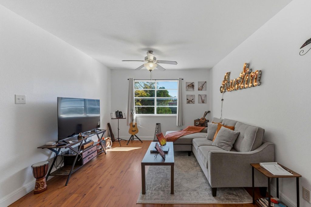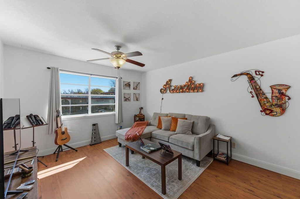 Located just north of UT Austin, This Music Themed condo is one of a kind and ready for new owners. Perfectly located and accessible to local venues, festivals, concerts and most importantly all things UT you couldn't have a better location. Spacious enough for Queen size beds with room to spare including a built in desk space, this two bedroom 1 bathroom home features laminate and tile flooring, high ceilings, and an abundance of natural light. The kitchen includes ample cabinetry, granite countertops, stainless steel appliances which includes a gas range, dishwasher and refrigerator. Laundry mat, no thanks, the bathroom features a combination washer and dryer, tiled shower, custom shelves and a spacious vanity. With two reserved parking spaces you will never have to fight for parking. What more could you want! This property has generated income consistently as both an airbnb and long term rental..