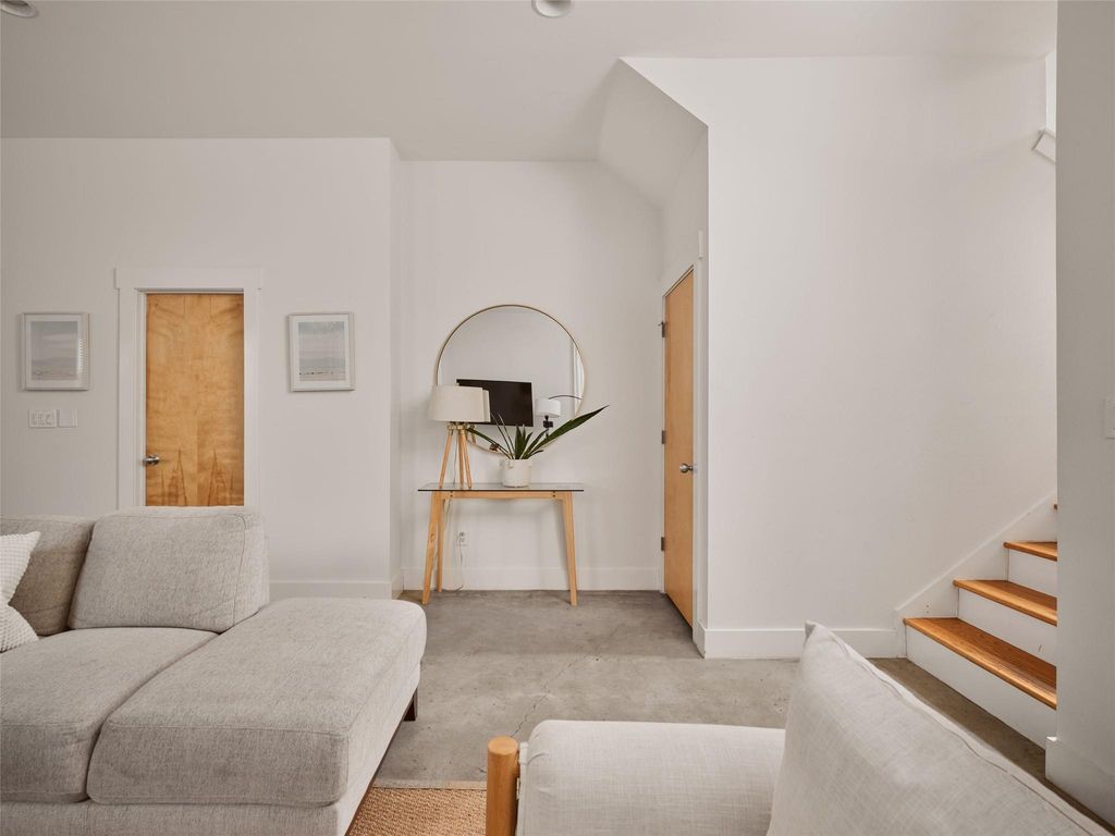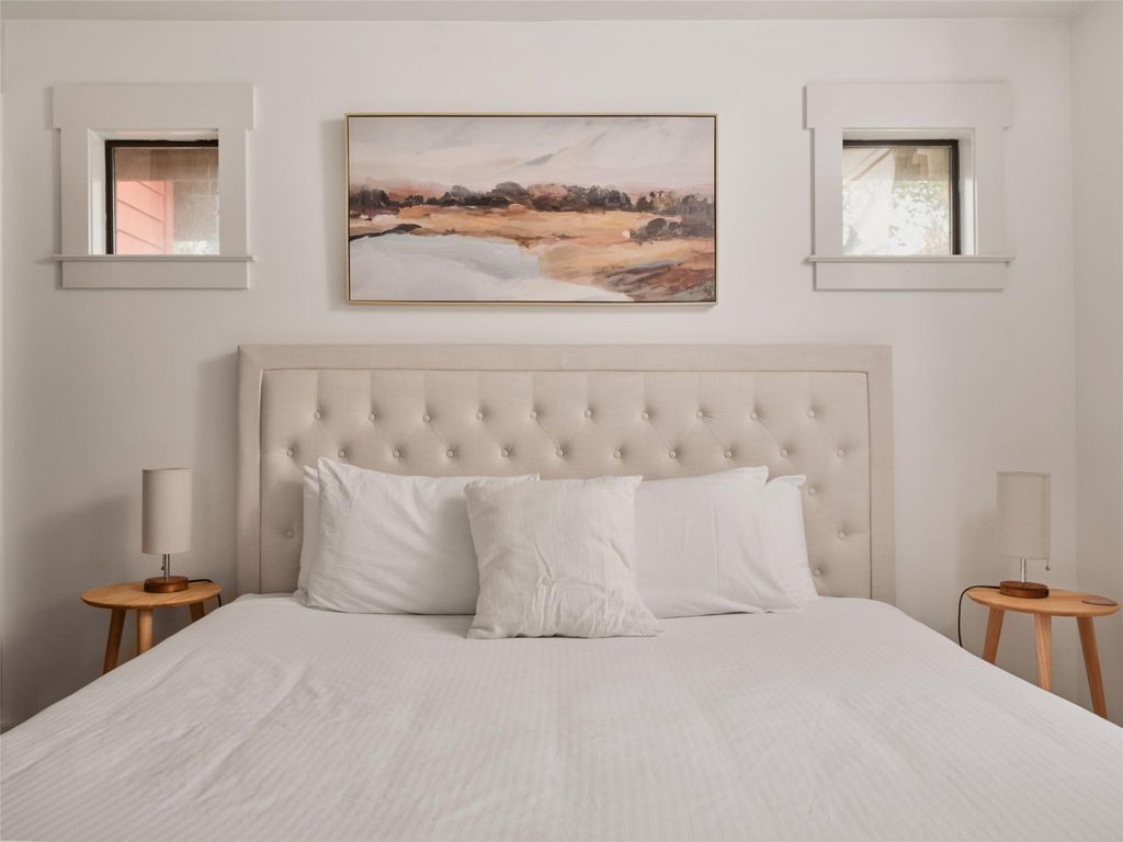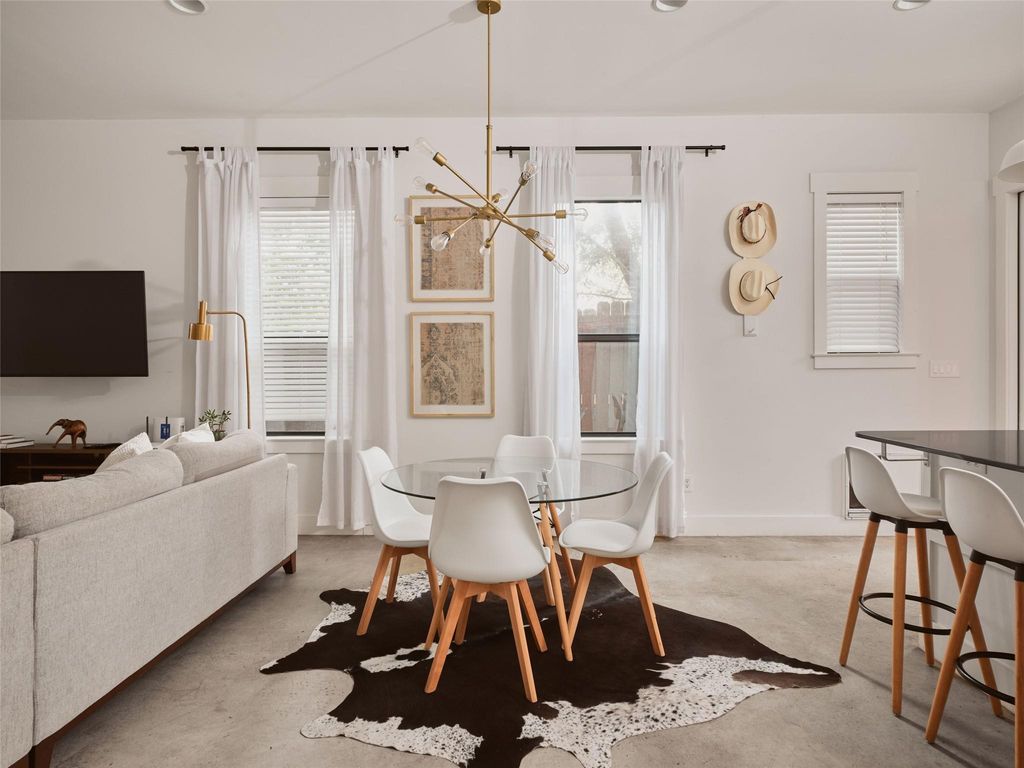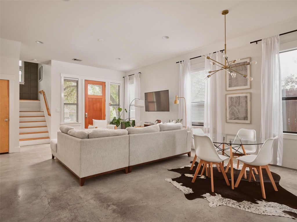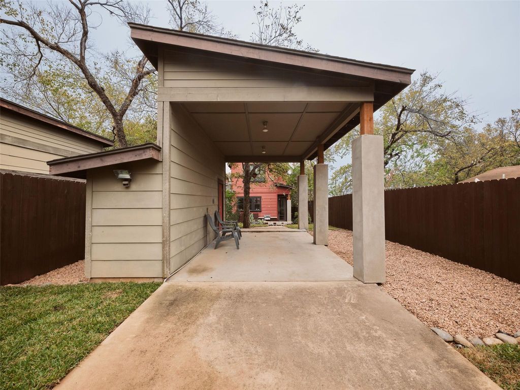 A rare find in 78702. Offering two bedrooms, two and a half bathrooms, and 1,516 square feet, this home comes with no HOA dues and no short-term rental restrictions. Currently operating as a successful Airbnb, it is being sold fully furnished and is ready for continued income potential or immediate enjoyment. Step outside and stroll to some of the Eastside's favorite restaurants and bars, or stay in and entertain from home. The main living and kitchen area opens directly to a private backyard, creating a seamless indoor outdoor flow ideal for dinner parties under the stars. Inside, the layout is open and inviting with clean lines, high ceilings, natural wood accents, and thoughtful niches that bring warmth and character throughout. Hardie siding, an irrigation system, a gated alley entrance, covered parking, and additional storage all contribute to a low maintenance East Austin lifestyle.
