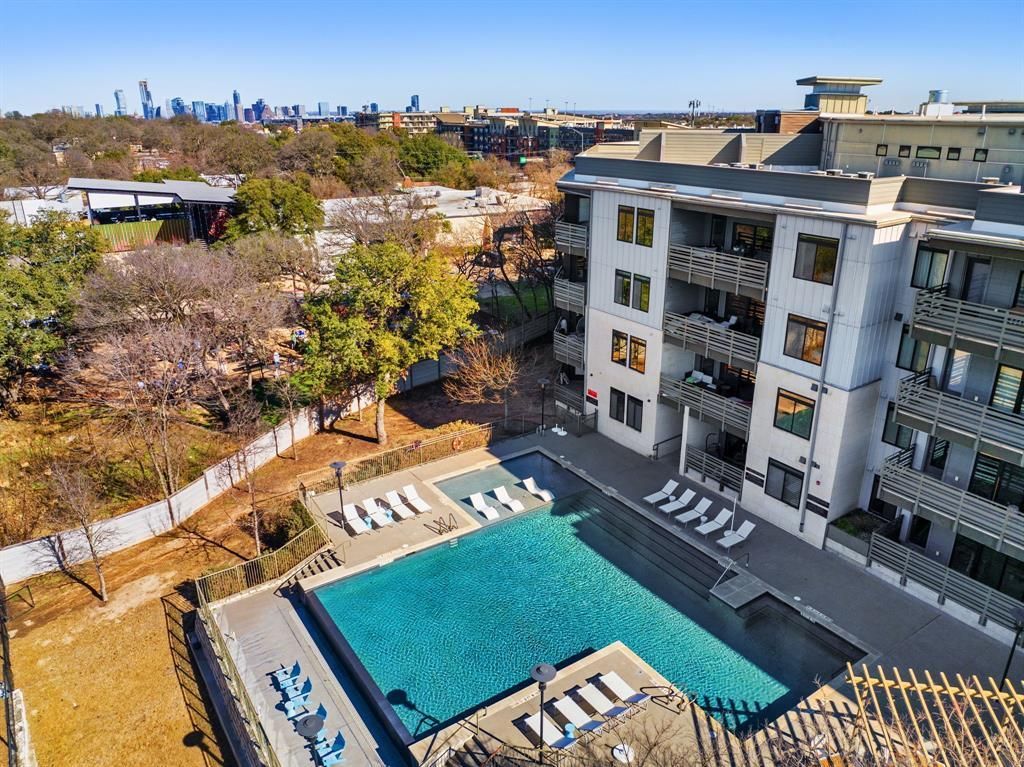 *Free 1 point rate buy-down for 2 years with preferred lender* Greenview on Barton Creek blends refined, low-maintenance living with upscale amenities and one of Austin's most vibrant locations. Set along the coveted South Lamar corridor in the Barton Hills neighborhood, this boutique mid-rise offers immediate access to the Barton Creek Greenbelt, Zilker Park, Barton Springs, and the city's best dining, shopping, and entertainment. This rare top-floor unit"”one of only six with its layout"”features 1 bedroom, 1.5 baths, and a flexible study with closet that can double as a guest room. Modern finishes, 9' ceilings, and floor-to-ceiling windows create an airy and expansive atmosphere filled with natural light, along with greenbelt and skyline views. The open layout flows through hardwood-floored living and dining spaces into a sleek kitchen outfitted with stainless steel appliances and quartz countertops. Step out onto your private terrace directly from the living room or primary suite to take in panoramic treetop views. Additional highlights include in-unit laundry hookups, a Nest thermostat, new HVAC, and a dedicated on-site storage unit. Enjoy resort-style amenities like an infinity-edge pool, grilling area, dog park, and EV-ready, secure garage parking. Unbeatable proximity to everything from Easy Tiger and Barley Bean Coffee to Broken Spoke and Loro, with Downtown Austin, MoPac, and ABIA just minutes away. For more info, go to: https://wkf.ms/4e8JYyH