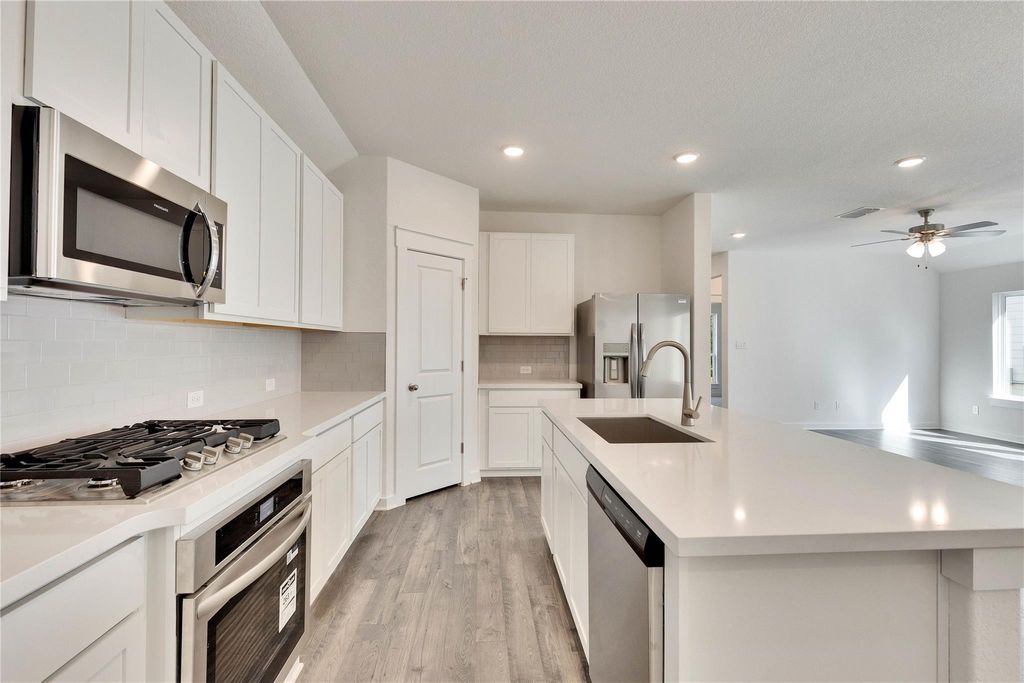 The only premium builder with the lowest tax rate in Elgin"”this move-in ready home combines large interior spaces, energy-efficient features, and an alley-load garage design for enhanced curb appeal and a cleaner streetscape. Welcome to the single-story Carroll III floor plan, a smart and stylish home designed for comfort, functionality, and affordability. This layout includes three well-proportioned bedrooms and two full bathrooms, making it a great option for first-time buyers, downsizers, or growing families. The upgraded kitchen features built-in appliances and a modern layout that maximizes workspace and efficiency, making it perfect for everyday cooking and entertaining. A dedicated tech space adds extra flexibility"”ideal for a home office, homework station, or digital hub. Step outside to enjoy a 7' x 9' covered patio, perfect for outdoor dining or simply relaxing in your private backyard. The home also includes pre-plumbing for a water softener loop, along with a full sprinkler system and fresh sod in both front and rear yards for easy lawn care. Remarkably, this is one of only two homes in Creeks Crossing priced under $300,000, offering exceptional value from the area's most premium builder"”also known for providing the lowest tax rate. Estimated availability is August 2025. For details on finish selections and upgrades, please contact the sales team.