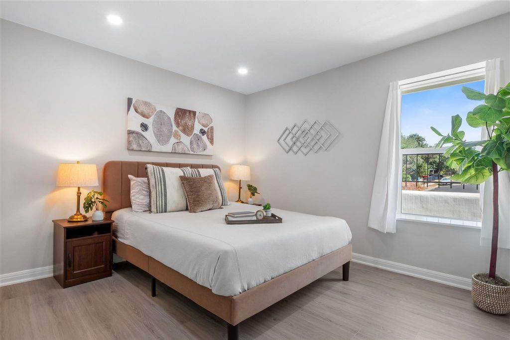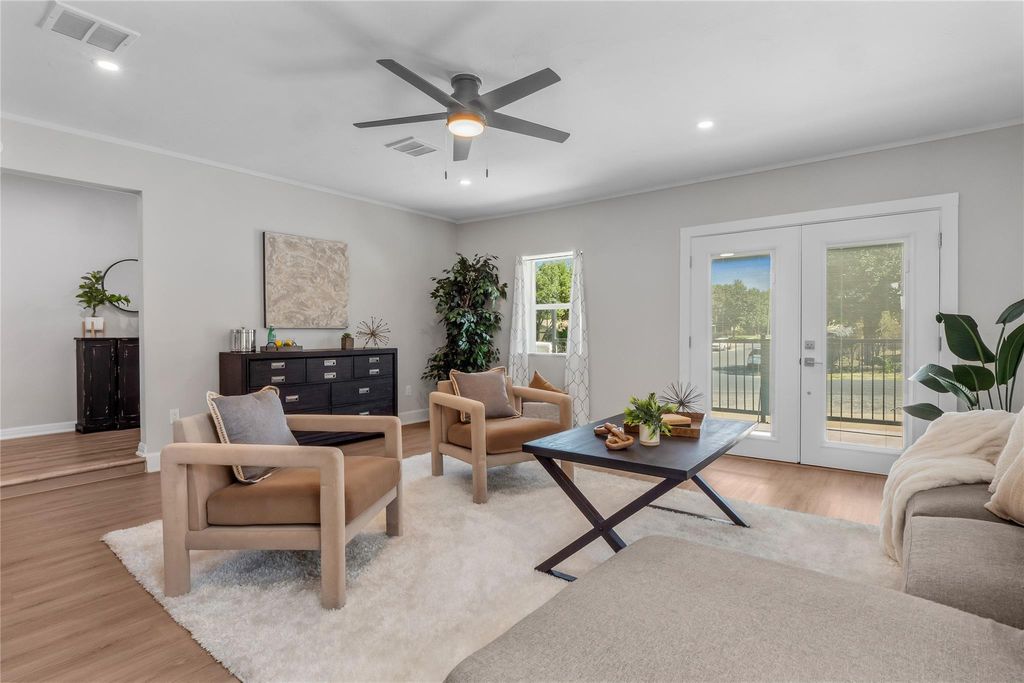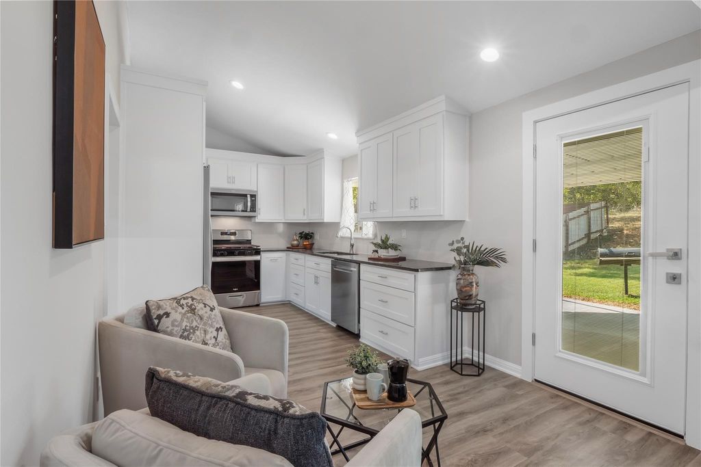 Say hello to stylish comfort! This move-in ready 3-bed, 2-bath single-story packs 1,516 sq. ft. of charm on a roomy .19-acre lot"”with no HOA. Step inside to find luxury vinyl plank flooring throughout, freshly painted interiors, and sleek recessed lighting that adds a polished touch to every room. The kitchen is a true showstopper: granite counters, quartz backsplash, farmhouse sink, walk-in pantry, custom soft-close cabinets with lazy Susans (yes, two!), and shiny stainless steel appliances. Both baths got a glow-up with granite vanities and modern fixtures. Need more room? The garage was converted into bonus living space"”perfect for a home office, workout zone, or movie lounge. Out back, picture evenings by the fire pit on your expansive covered patio. The home's thoughtful upgrades keep life stress-free: metal roof, HardiePlank siding, energy-efficient windows, gutters, upgraded doors, and newer HVAC & water heater. Best part? The location"”minutes from Walter E. Long Park/Decker Lake for trails and water time, and near Turner-Roberts Rec Center. With quick jumps onto 183, 290, or 130, you're set for downtown fun, Tesla and Samsung commutes, or quick trips to ABIA. Backyard property line ends just before the tree"”no rear fence in place.