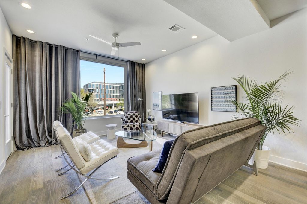 Ideal Eastside location! This 2 bed/2.5 bath townhome-style condo is one of only four townhome units in the building. Each bedroom has it's own private en-suite bathroom. Spacious open concept first floor with powder room and private balcony. Condo is equipped with energy saving solar panels, gated reserved parking just outside unit and private gated walk-up exterior entrance to unit. Just a block from hip E 6th St with lots of restaurants, cafes, bars and breweries. Best location on Eastside. Close to downtown and the Eastside Whole Foods & Target. Furniture negotiable. HOA allows for Short Term Rental (STR), with HOA limited list approval & valid city STR permit.