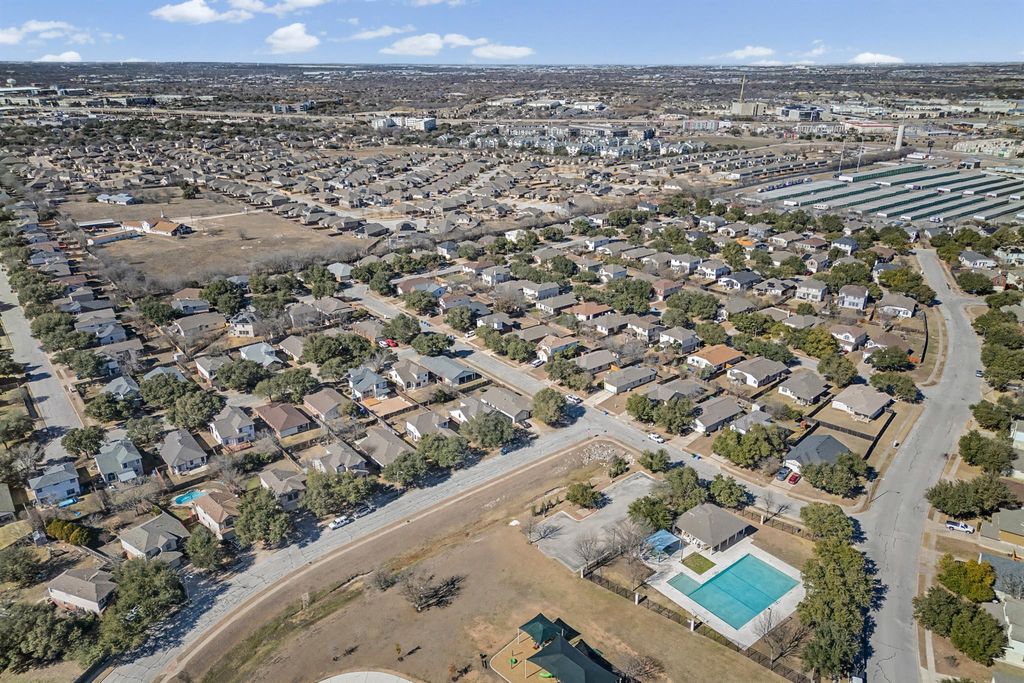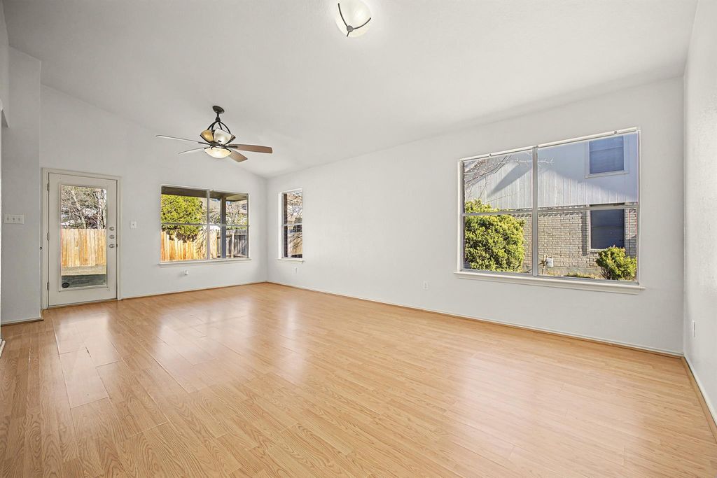 Adorable Milburn floorplan with kitchen overlooking front yard and formal dining area. Strategically priced to ignite immediate interest. Just moments from the neighborhood HOA pool (access included!), playground and park with jogging loop. Vaulted ceilings. Sleek stainless-steel appliances. Large 2-car garage includes a water softener. Easy care laminate and tile flooring throughout. No Carpet. All bedrooms have ceiling fans and spacious walk-in closets. Large, very private backyard features a covered patio. New roof in 2019. Minutes from Dell Technologies and the Tesla GigaFactory. Just around the corner from H-E-B, Starbucks, and a variety of dining options. Easy access to I-35 and TX-45. Short commute to Austin or Pflugerville. Owner will provide Survey, T47 and Sellers Disclosure Notice