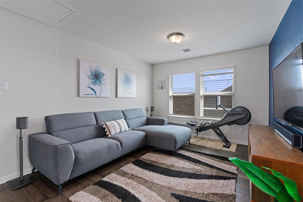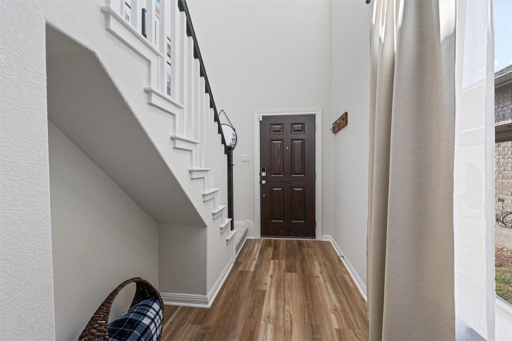 A private drive leads to this beautifully upgraded home, nestled in the peaceful and coveted Carmel West subdivision. Step through the covered front porch into a warm, light-filled entryway that opens into a spacious great room"”ideal for entertaining and everyday living. Gorgeous luxury vinyl plank flooring flows throughout the downstairs, adding warmth, durability, and modern style. The open floor plan seamlessly connects the living room, dining area, and kitchen, while a stylish half bath provides convenience for guests. A versatile flex room, accented with elegant barn doors, makes a perfect home office, playroom, or creative space. Custom-built cabinetry in both the living and flex rooms adds charm, functionality, and smart storage throughout. Upstairs, engineered hardwood flooring elevates a secondary living area provides additional flexible space. The tranquil and spacious primary suite is a true retreat"”bright, serene, and thoughtfully designed with a statement wall and two beautifully upgraded walk-in closets by Closets by Design. The en suite bathroom features dual vanities, a walk-in shower, and built-in shelving for extra storage. Two guest bedrooms"”each with walk-in closets"”share a full bath with a tub/shower combo. Additional upgrades include a laundry room with added shelving and a kitchen enhanced with storage drawers in several cabinets. Out back, enjoy a lush green yard and a covered patio perfect for relaxing or entertaining outdoors. A custom under-stair closet offers added interior storage, while the garage features built-in shelving and insulated panels for year-round comfort. This home is packed with over $45K in thoughtful upgrades and built for efficiency with energy-efficient windows, HVAC, insulation, a Tesla solar panel system with whole-house battery backup, and a water softener plus drinking filtration system. With every detail designed for comfort, sustainability, and modern living, this gem is truly move-in ready.