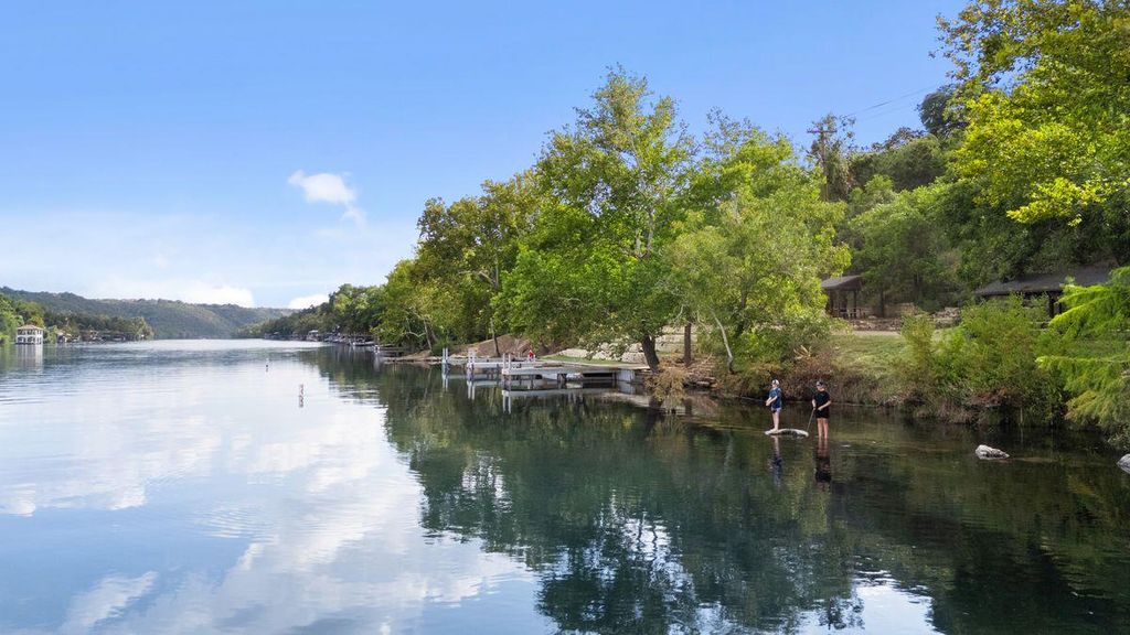 Discover the charm of Apache Shores living! Fully renovated in 2022 and nestled on .574 acres, this home was designed for seamless living. Relax and enjoy the peaceful surroundings on the large front porch before you step inside to a spacious living area with beamed ceilings. Get cozy next to the stand alone wood burning fire place. The kitchen has ample cabinet space with a breakfast bar and opens to a sunlit dining space. A large master bedroom with en suite bathroom, and large walk in closet are on the main level. An additional bedroom located on main level and full bath is ideal for guest. Walk upstairs to a spacious second living room that gives you access to the back deck, where outdoor dining will be a must. Additionally on the second floor is two bedrooms and a full bath. The neighborhood is ideal for fun in the sun. Offering a lakefront park with a private boat ramp, community swimming pool, tennis and basketball courts, full 18 hole disc golf course, and a playground. Located in the award winning Lake Travis Isd. Don't miss the opportunity to make this exceptional property your new place to call home.