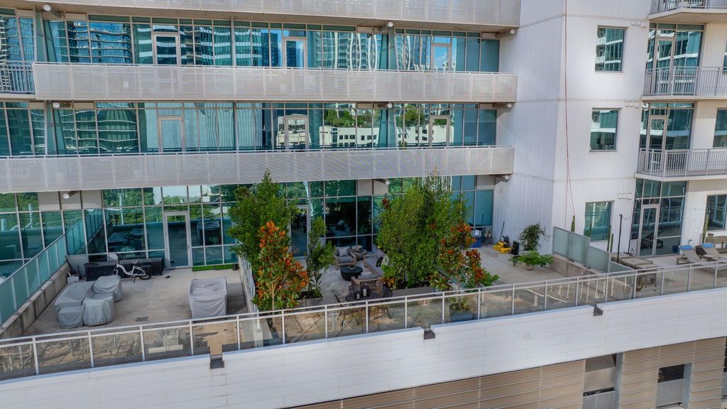 One-of-a-kind opportunity to own a rare terrace unit at the highly sought-after Seaholm Residences. Enjoy protected, stunning city views from your very own private 660 SF outdoor living space surrounded by gorgeous trees and flowers in Restoration Hardware planters, a true sanctuary in the heart of downtown. Luxurious modern finishes and floor-to-ceiling windows throughout. Fantastic amenities on the same floor include a lap pool, multiple grills, outdoor lounge and dining areas, fire pit, clubroom, gym, business center, dog park, and dog washing station. Residents also enjoy 24- hour concierge, security, and laundry services. This unit offers a prime parking space on G4 (2nd parking level in the garage), Urban Storage Unit, gas cooking, washer and dryer, a large bathroom, and custom closet. Just steps from Lady Bird Lake, wonderful dining options, and shops, this location truly cannot be beat.