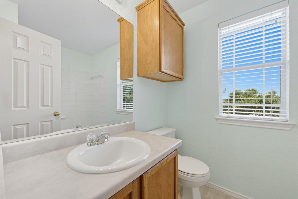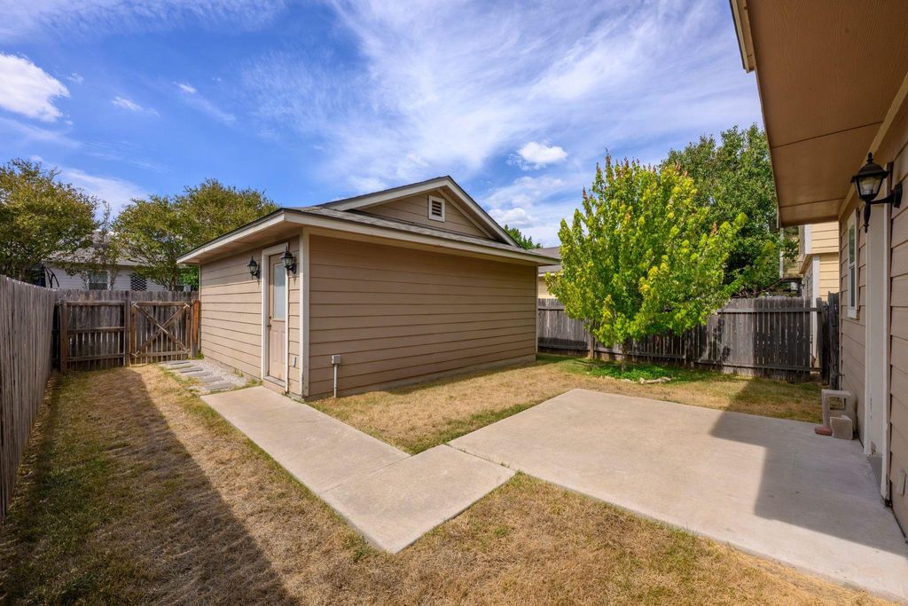 This lovely 2-story home is located in the desirable 78744 area of Austin. As you approach the property, you'll notice a sizeable front yard with exterior steps that guide you to a cozy front porch, perfect for relaxing and taking in the surroundings. Upon entering, you'll appreciate the open and functional layout, which features high ceilings and abundant natural light throughout. The living room is equipped with a ceiling fan and offers serene street views, seamlessly integrating into the dining and kitchen areas. The dining space is conveniently open to the kitchen and is highlighted by a charming overhead light fixture that brightens the area. The kitchen is well-appointed with ample cabinet and countertop space, a convenient bar, and a pantry to help keep you organized. A half bathroom is also located on the main floor, adding to the convenience of the home's layout. The upstairs area features three bedrooms, including a primary bedroom with a ceiling fan, a walk-in closet, and an en-suite bathroom. The en-suite bathroom boasts a window, a bathtub/shower combo, and sleek tile flooring. The two secondary bedrooms also feature ceiling fans and walk-in closets, providing ample storage and comfort. The fully fenced backyard is great for outdoor entertaining, with patio space and a clean walkway that leads to a detached 2-car garage. This outdoor space offers a serene atmosphere, ideal for relaxation or spending time with family and friends. This home is conveniently located near shops, restaurants, and Highway 35, making it an excellent choice for those looking for a balance of tranquility and accessibility.