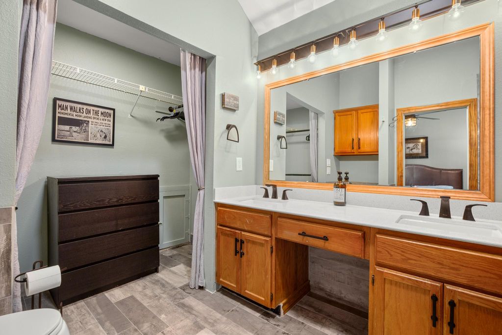 Looking for a modern and stylish place in a quiet, secret neighborhood right near EVERYTHING? Just minutes to South Congress, Rainey Street, the airport, Tesla, SXSW, ACL, F1/Circuit of the Americas race track, Oracle, Town Lake Boardwalk + most of Austin's trendiest restaurants, bars, breweries + coffee shops! High ceilings, no carpet, all new light fixtures/fans + recent luxury flooring give the home a chic look, while wood accents give the home a charming cozy cabin effect! Extensive outdoor entertaining space both in front + in back with many tall trees for shade, charming outdoor lighting, a fire pit circle, twinkle lights, porch dining + even a barn workshop/storage area! Enjoy sunrise on the back porch with a cup of coffee + sunsets on the front porch with a glass of wine! The kitchen features all new lighting, quartz counters, new gooseneck faucet, stainless steel high-quality appliances (including convection oven), 5-burner gas stove, + a wide kitchen counter with breakfast bar. Enter the primary bedroom through large double doors then into the luxurious primary bath through the tasteful barn door. Primary bathroom features galaxy quartz counters, double vanity, large framed mirror + an oversized walk-in spa shower with new tile surround, river rock floor, double shower head + frameless glass door! Secondary bath features quartz counters, new faucet, new mirrors, new frameless glass door + new tile shower surround. Gigabit fiber for work + entertainment. 4m from the upcoming epic River Park music venue + mixed-use development. Available for sale fully furnished as a BnB for the right price. Roof will be replaced before sale/closing. More local hotspots include: Meanwhile Brewery, Pinthouse Brewing, 888 Pan Asian, Hai Ky, The Buzz Mill, Come + Take It Live, Emo's Austin, Cidercade, and Lustre Pearl. This place is fabulous, quiet AND central to ALL that Austin has to offer!