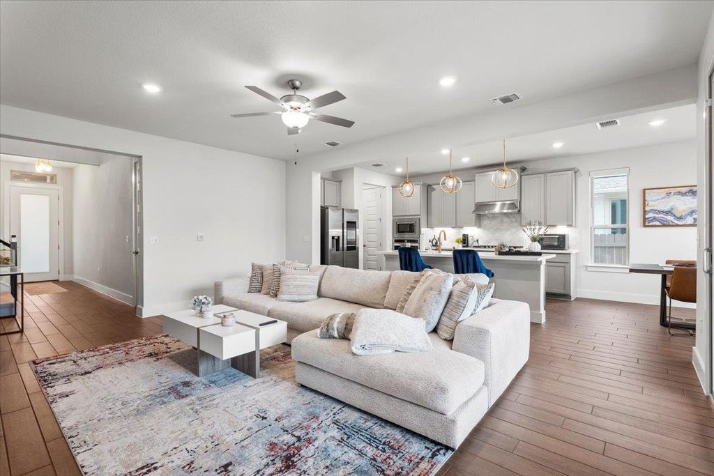 This barely-lived-in home is less than 3 years old and loaded with upgrades from lighting fixtures to a huge, oversized lot. The gourmet kitchen is open to the living area and features a separate cooktop and oven, stainless steel appliances, and upgraded pendant lighting. Downstairs also features the primary suite, the laundry room, an office, and an additional full bathroom located outside the office in case you'd rather use it as a guest suite. The spacious upstairs features a game room and two additional bedrooms plus a full bathroom. The backyard features a covered patio and plenty of room for BBQ gatherings. Located in the Easton Park neighborhood, you cannot beat the amenities from multiple parks to a full gym, multiple pools, and a full-time HOA staff who organize events from food trucks to live music and more. Just a short drive from downtown Austin and the airport, this neighborhood is in the perfect location!
