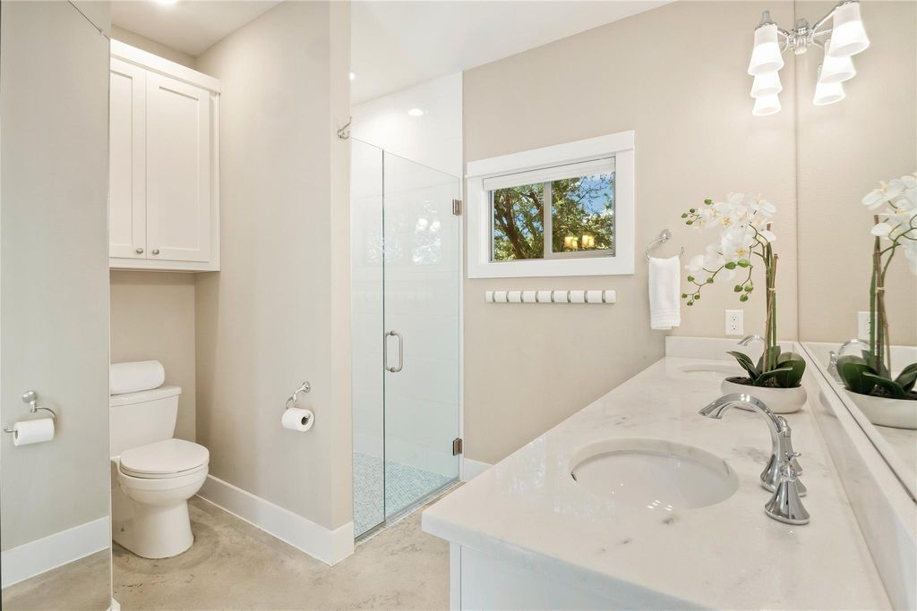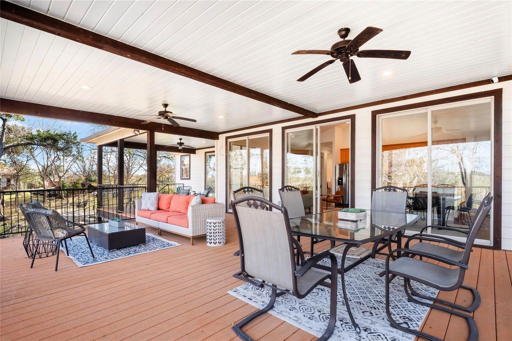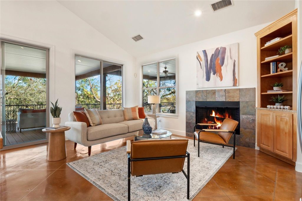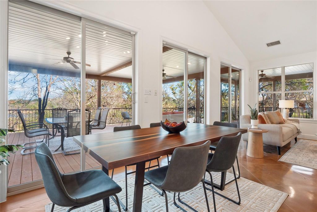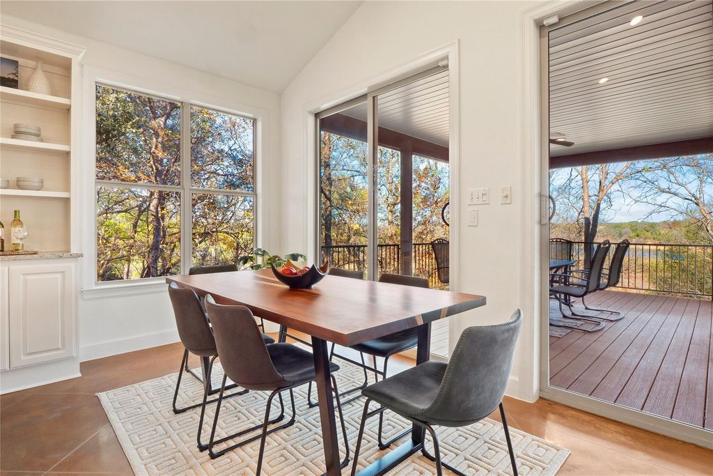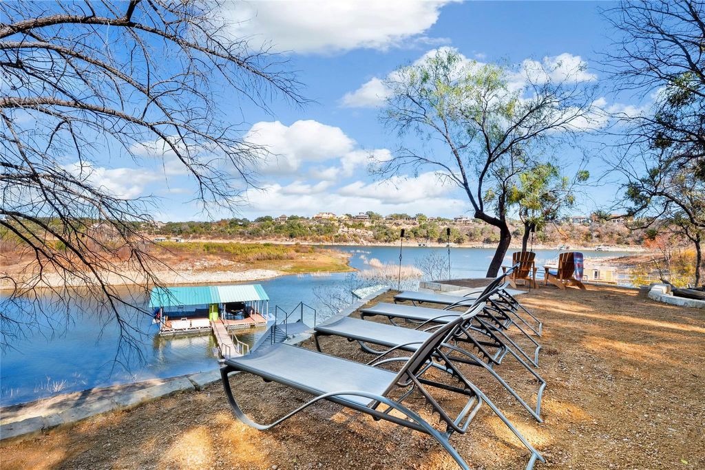 Peaceful waterfront retreat on the Pedernales River featuring two beautifully designed, light-filled homes"” 2 bed/2 bath main residence and a 3 bed/2 bath guest house"”offering exceptional flexibility for full-time living, hosting extended family, or generating strong short-term rental income when not in residence. Both homes showcase low-maintenance concrete floors, walls of windows, and an abundance of natural light, creating bright, airy interiors. Updated bathrooms, generously sized bedrooms, and a move-in-ready condition ensure comfort and ease for owners and guests alike. Enjoy approximately 130 feet of waterfront, complete with a private swim area and an impressive entertainment-focused 24' x 10' boat dock with additional covered lounging area, and self-leveling steps to the water"”ideal for boating, paddle boarding, kayaking, or floating the river. Outdoor living is exceptional and designed for gathering, with a large stone patio offering multiple lounging zones, a covered outdoor kitchen and a spacious sitting area anchored by a stone wood-burning outdoor fireplace. A stunning 745 square ft covered deck spans the home, delivering sweeping river views and a peaceful, elevated treehouse-like experience your guests will rave about. Evenings are best enjoyed at the central fire pit area between the two homes, enhanced by cafe lighting and washer pits"”perfect for relaxing after a day on the water. Additional highlights include ample parking, a 2-car garage, and thoughtful system upgrades including new roofs on both homes (September 2024), tankless water heaters and water softeners in both residences, and a reverse osmosis system in the main house. A rare opportunity to own a private, turn-key riverfront compound in the highly desirable Lake Travis / Pedernales River corridor, offering an unmatched blend of lifestyle, privacy, and income potential.