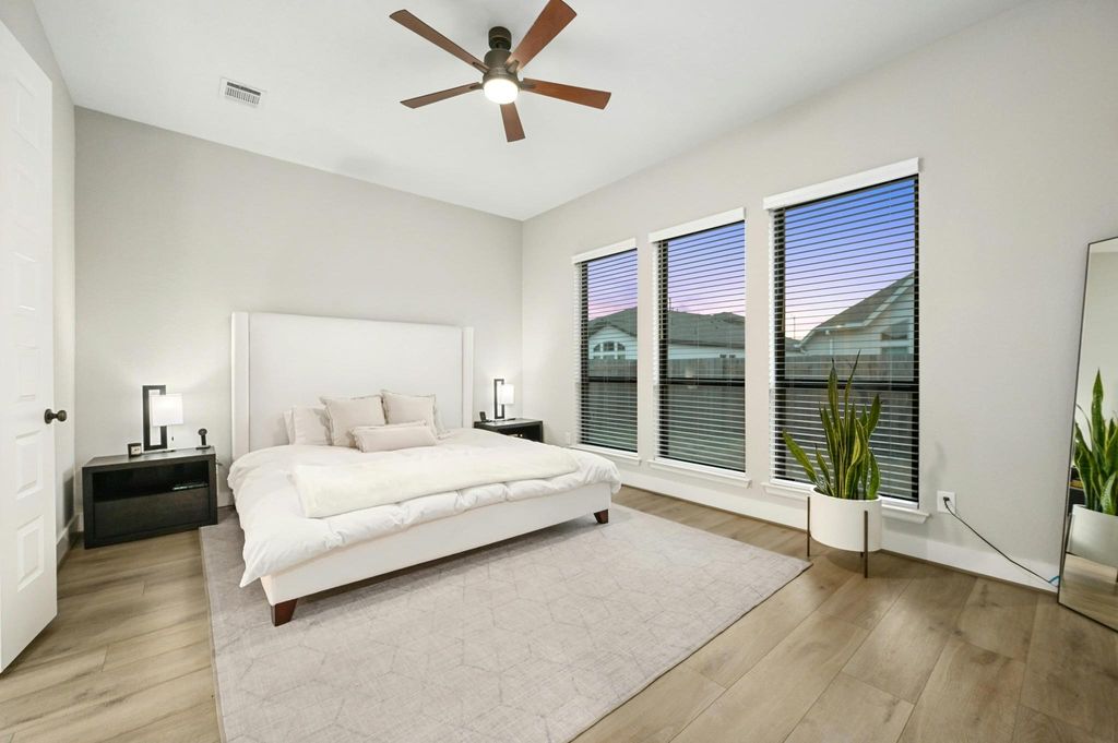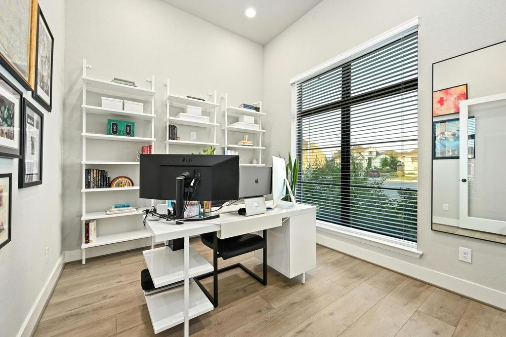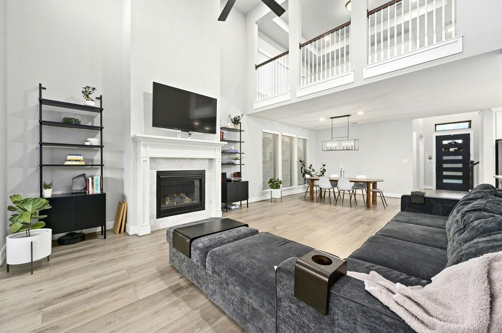 Welcome to your family's next chapter in the heart of ShadowGlen! Nestled in a quiet cul-de-sac, this stunning Perry Homes residence combines style, comfort, and everyday functionality - perfect for busy families who love to entertain, relax, and grow. Thoughtfully upgraded by the original owners, this home features a striking curb appeal, luxury vinyl flooring, and a bright, open-concept layout that brings everyone together. The modern kitchen is the heart of the home, with sleek quartz countertops, an added pot filler, stainless steel appliances, and a large island overlooking the spacious living area with soaring ceilings and tons of natural light that shines through the floor-to-ceiling sliding glass doors that open to your private backyard retreat. A bonus loft upstairs offers extra space for a playroom, home office, or media zone - whatever suits your family's needs. The primary suite is a true standout, featuring upgraded dual closets, free standing soaking tub, and oversized walk in shower .Enjoy year-round outdoor living under the covered patio, perfect for family BBQs or morning coffee in the fresh air. Beyond your front door, ShadowGlen is a community built for adventure and connection. Residents enjoy access to a resort-style water park with towering slides and a splash pad, a 4,300-square-foot fitness center, and miles of scenic nature trails through 200+ acres of woodlands. Golf lovers will appreciate the ShadowGlen Golf Club - an 18-hole championship course with sweeping views and a laid-back grill to relax after a round. Located just 20 minutes from Downtown Austin, this home offers the rare mix of peaceful suburban living with easy access to city conveniences. Whether you're enjoying neighborhood events, heading out for a hike, or relaxing at home, everyday here feels like a getaway. Just 18 mins to downtown Austin, 18 mins to the Domain, 20 mins to Austin Bergstrom Int Airport 18 mins to Tesla gigafactory & 20 mins to F1 Circuit of the Americas!
