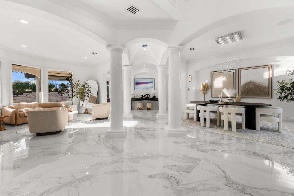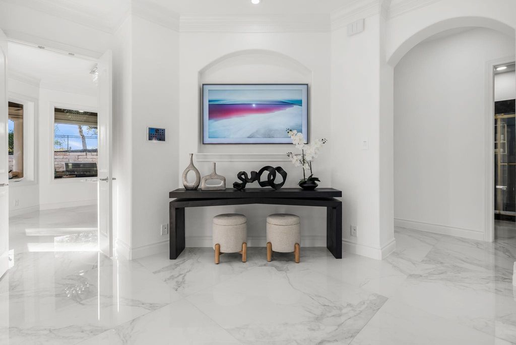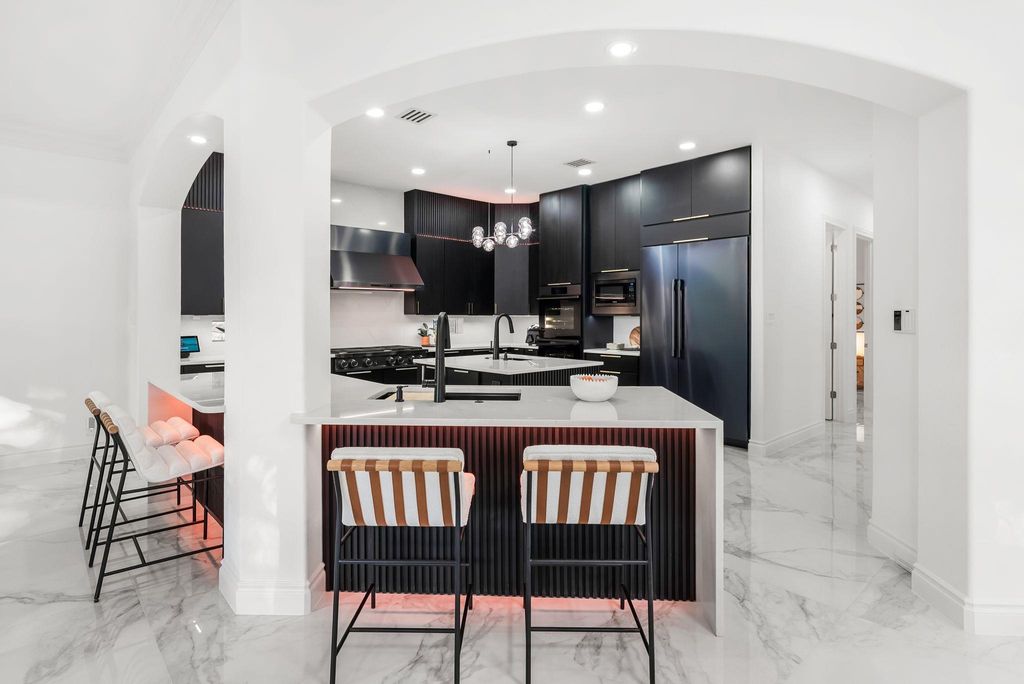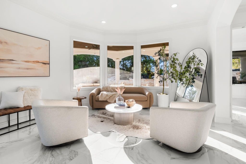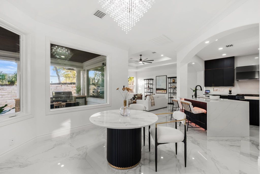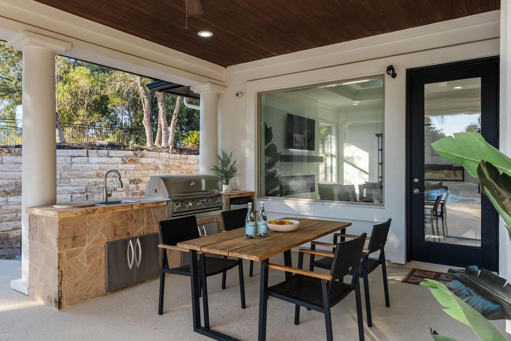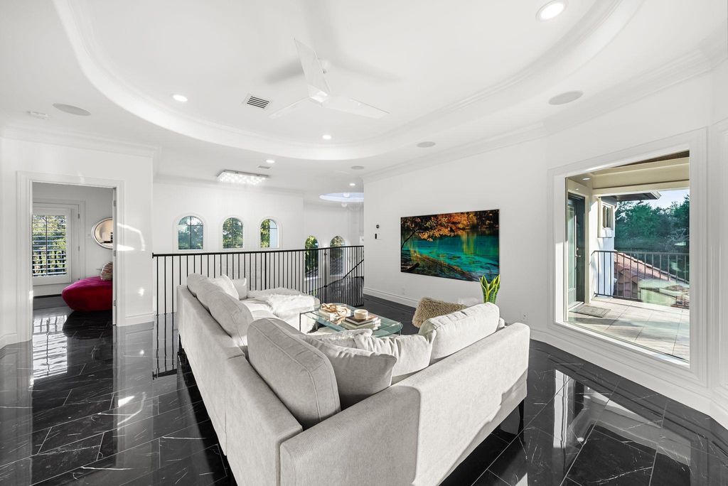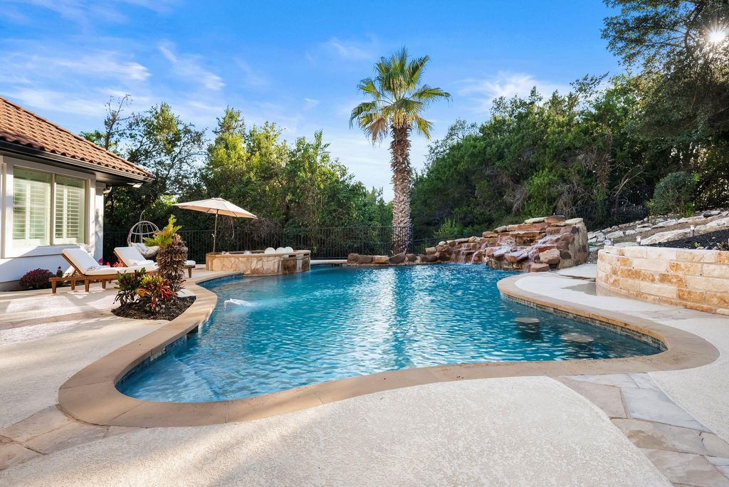 Located within the gated UT Golf Club section of Steiner Ranch, this fully remodeled home combines sleek modern design, advanced smart-home technology, and thoughtful livability across a rare half-acre lot. Every surface has been elevated "” from the new porcelain tile floors and waterfall-edge countertops to designer lighting and a curved staircase that anchors the bright, double-height entryway. The kitchen is a centerpiece of the home, featuring professional-grade Dacor smart appliances, including a steam double convection oven, smart rangetop, wall hood, dishwasher, and double-column refrigerator with remote viewing. Custom backsplash, black stainless finishes, and a crystal chandelier add polish and sophistication. Every system is integrated "” lighting, audio, pool, and security "” all controlled by built-in tablets or by voice through Alexa, Google Home, or Apple. The main level includes a spacious primary suite and a full guest suite with its own bath, ideal for flexible or multigenerational living. Upstairs, three additional bedrooms, two full baths, and a grand balcony offer space for guests or family. Outside, the pool, spa, and cascading waterfall are surrounded by mature landscaping that enhances the sense of calm and connection. Just a short walk from the UT Golf Club's golf, tennis, and dining amenities, this home represents a rare combination of technology, design, and livability in one of Steiner Ranch's most sought-after locations.