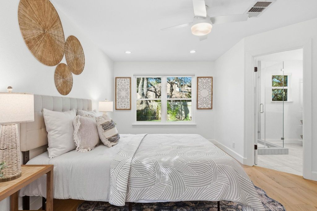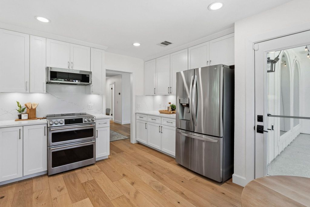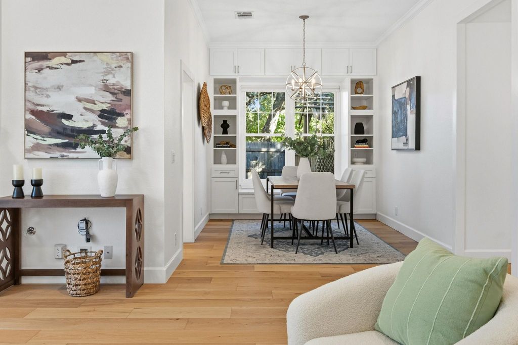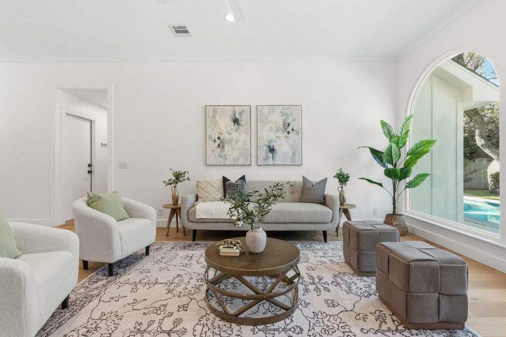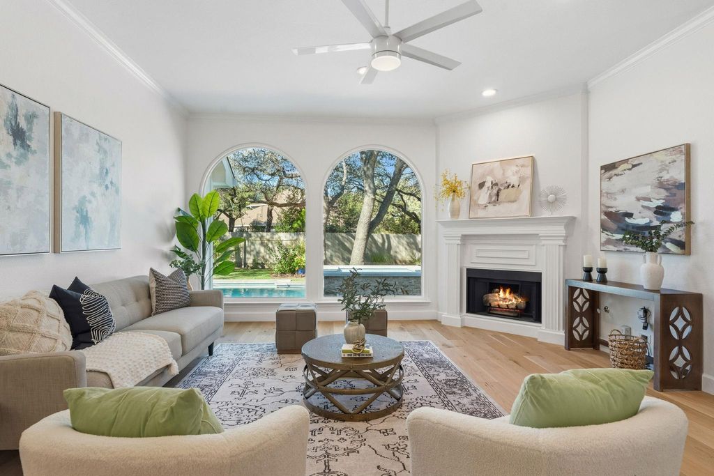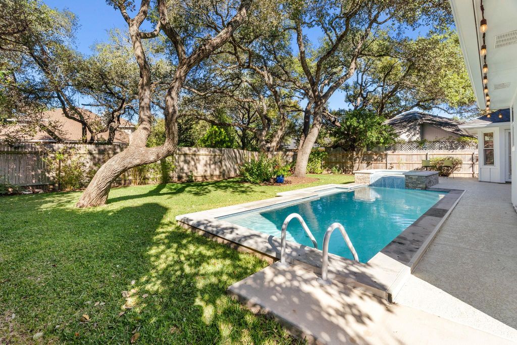 This is the one you've been waiting for! This stunningly remodeled single-story home with high ceilings combines timeless design with modern updates and features a sparkling pool and spa- perfect for relaxing or entertaining. From the captivating curb appeal framed by majestic oaks to the inviting backyard oasis, this home impresses inside and out. A spacious family room with a cozy fireplace and tasteful arched windows overlooks the scenic backyard, creating the perfect gathering space filled with natural light. Beautiful wood floors flow throughout, enhancing the warmth and cohesion of each space. The thoughtful floor plan offers three bedrooms plus a dedicated office (or optional fourth bedroom) for flexibility and function. The recently remodeled kitchen showcases soft-close Omega cabinetry, Cambria quartz countertops, and premium stainless steel appliances. Both bathrooms were tastefully updated with quartz countertops, frameless glass showers, and elegant finishes. Energy-efficient Pella vinyl windows were installed throughout the home in 2023. Located in one of Austin's most sought-after neighborhoods, with easy access to top-rated schools, shopping, and dining, this home delivers the perfect blend of style, comfort, and convenience.