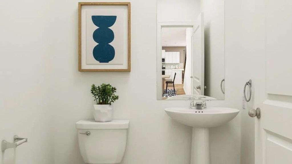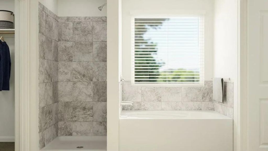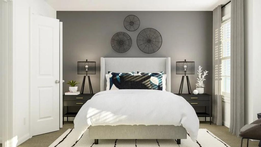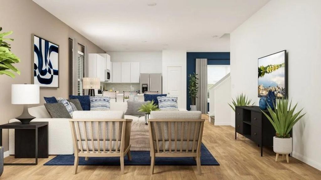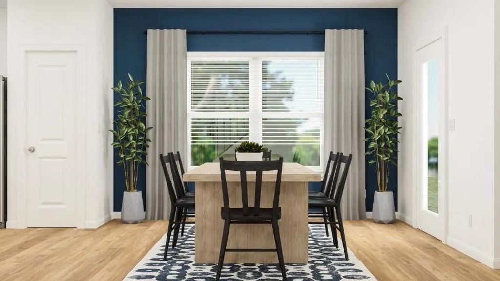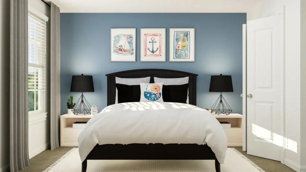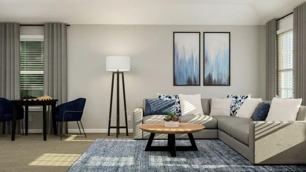 The Ames - The first level of this two-story home is dedicated to the open concept living and dining space, offering access to the covered patio and two-car garage. Three bedrooms and a game room occupy the second level, including the generous owner's suite equipped with a private bathroom and a walk-in closet. Photos are for illustrative purposes only. Estimated Completion December 2025.