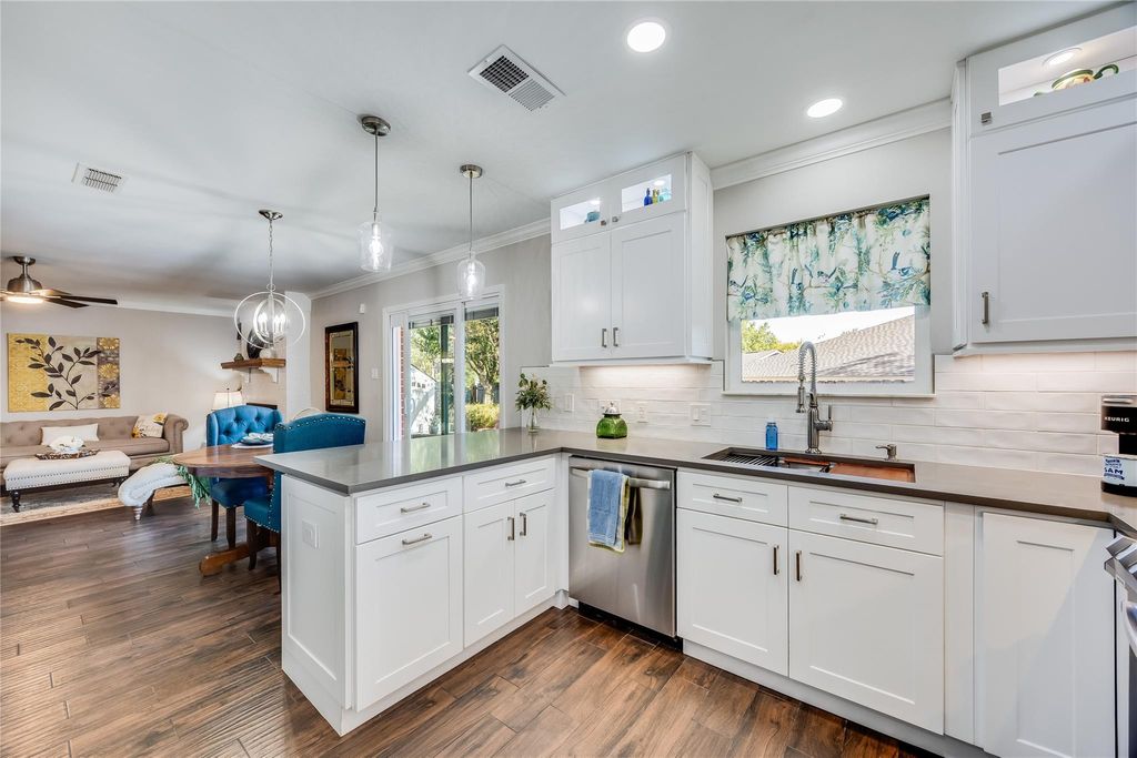 From the moment you step inside this charming home, you can feel the care and love its owner has poured into it over the past 30 years. Purchased in 1992 from the original owner (blueprints on hand), the seller is now ready for the next chapter. In 2021, the home underwent a thoughtful renovation where nearly every surface was refreshed. The centerpiece is the bright, inviting kitchen, drenched in natural light. From the soft-close maple cabinets that extend to the ceiling"”with glass uppers and in-cabinet lighting"”to the quartz countertops accented by under-cabinet illumination, the craftsmanship shines. The kitchen also features a new appliance package and functional upgrades like a corner lazy Susan, spice drawer, and work station sink. A small section of the garage was converted into a walk-in pantry and laundry/mudroom, while still maintaining full two-car storage. A new sliding glass door (2021) by the dining area leads to the resurfaced back patio. The living room fireplace was converted to gas for effortless warmth, and matching wood-look tile runs throughout the home (no carpet), with ceramic tile in the baths. Both baths include a full Kohler package"”the hall bath offers a double vanity and tub/shower combo, while the primary showcases a walk-in shower with tile surround. The third bedroom/office features glass French doors and dual entries. The interior was freshly painted with Behr Premium Scuff Defense paint, and new LED lighting and fixtures were added throughout. The HVAC was replaced in 2020 with a Halo air purifier and smart thermostat. The roof (2021) features architectural shingles and full gutters with leaf guards. Two French drains were added to improve front-yard drainage, and the electrical panel was upgraded in 2013. Minutes from The Domain, Q2 Stadium, Topgolf, and an easy commute to Downtown Austin, this lovingly maintained home blends comfort, quality, and convenience. Schedule your private showing today!