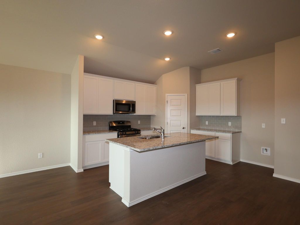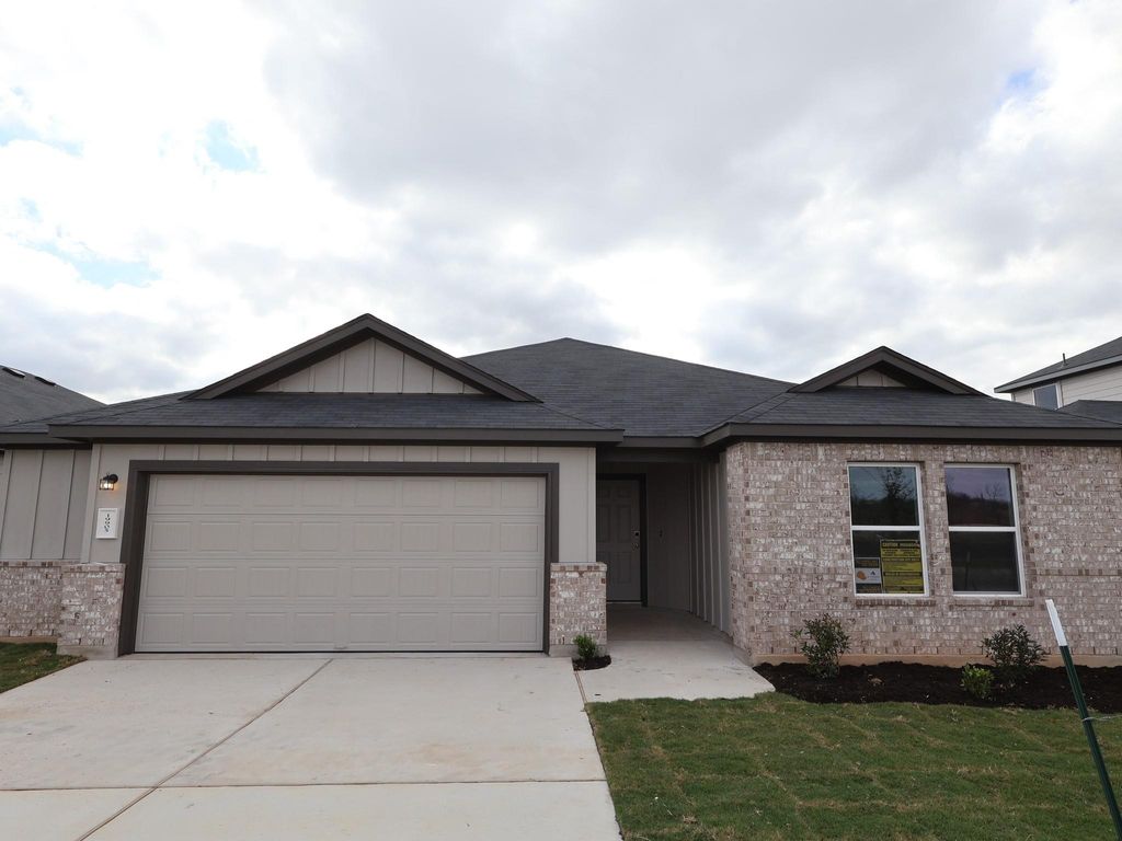 Experience elevated living in this stunning 1 story Livingston plan - a spacious 3 -bedroom and 2 -bath with flex space home with room for everyone to spread out. The bright, open layout features a chef-inspired kitchen with granite countertops, stainless appliances with a gas range, and a large island overlooking the spacious dining room. The owner's suite located on the first floor offers spa-style luxury with dual vanities and an oversized walk-in shower. Enjoy outdoor living on the covered patio. Located in the Carillon community within Manor ISD, close to shopping, dining, and major commuter routes.