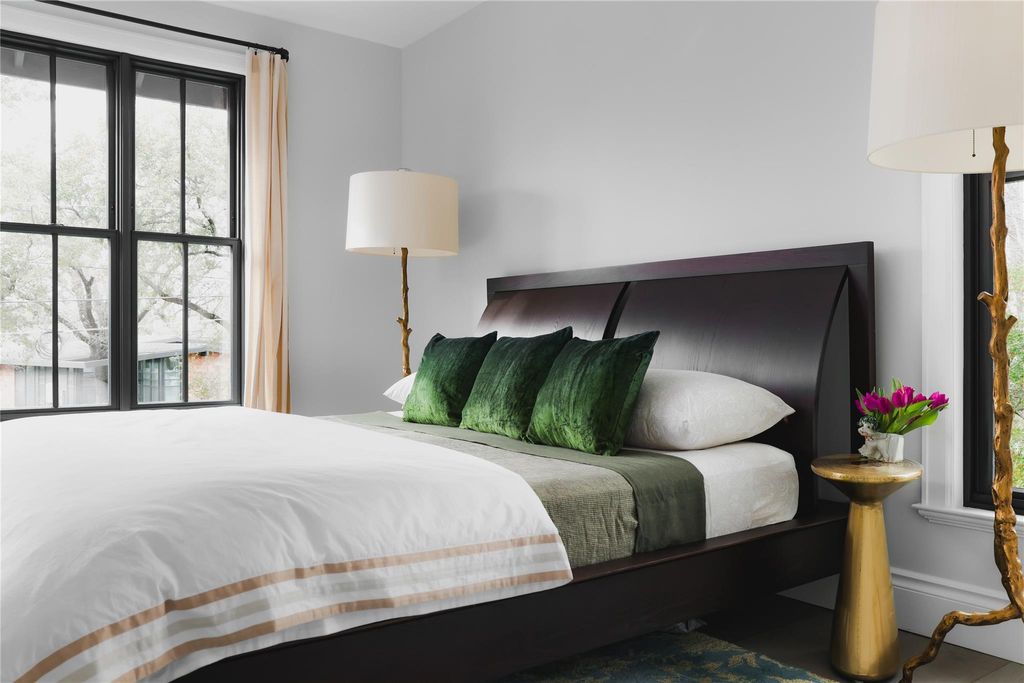 Situated on a coveted corner lot in the heart of Deep Eddy, this exceptional property presents two distinct residences, each a masterpiece of design and craftsmanship. A visionary 2021 renovation by Judi Mills Residential Design has transformed both homes into a harmonious retreat, with the main 4-bedroom, 2.5-bathroom residence offering a fully gated sanctuary centered around a serene courtyard pool. Refined interiors blend stylish finishes with soaring ceilings, offering an unparalleled living experience just moments from Austin's most iconic destinations. Step beyond arched entry doors into an expansive open floor plan designed for both comfort and elegance. The heart of the home, the kitchen, boasts custom millwork on the L-shaped island, brass fixtures, high-end lighting, a built-in Sub-Zero refrigerator, and premium appliances, including dual ovens and an induction cooktop. Wide-plank wood floors flow throughout, leading to the inviting living and dining areas framed by custom windows that flood the home with natural light. The primary suite is discreetly tucked away, featuring a spa-like bath with a marble-tiled shower, dual vanities, and a walk-in closet. Upstairs, two additional bedrooms and a flexible living space (potential fourth bedroom) which opens to a covered deck, perfect for year-round outdoor entertaining. The detached 2-bedroom, 1-bathroom guest home delivers charm and functionality with vaulted ceilings, a beautifully appointed kitchen with a large island and premium finishes, and an open living and dining area filled with natural light. Complete with its own driveway and tandem parking, this residence is ideal as a guest home, rental, or private retreat. Just two blocks from Lake Austin H-E-B and within walking distance of the Hike & Bike Trail, Juiceland, Deep Eddy Pool, and Pool Burger, this rare offering blends timeless design with unbeatable walkability"”an urban sanctuary unlike any other.