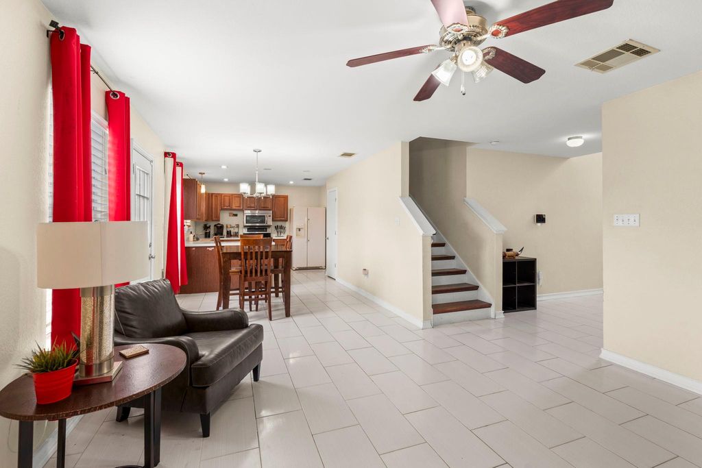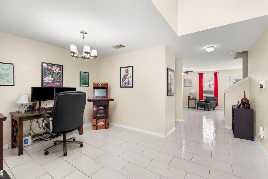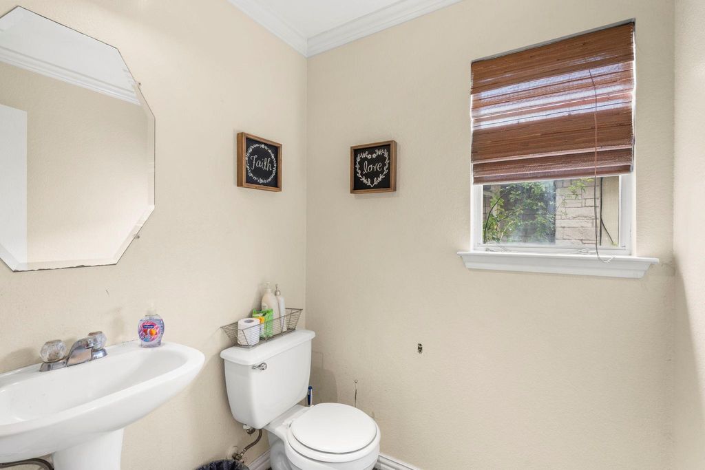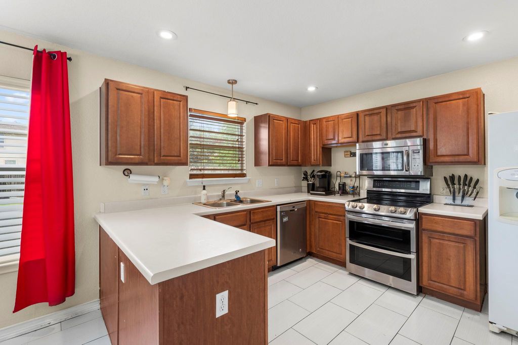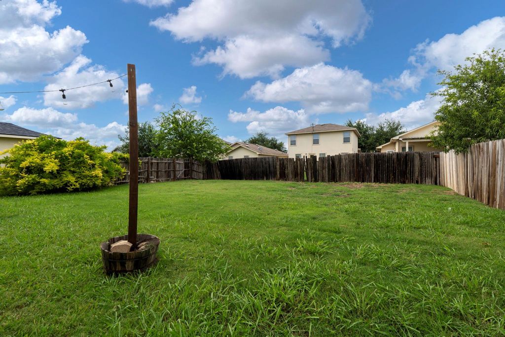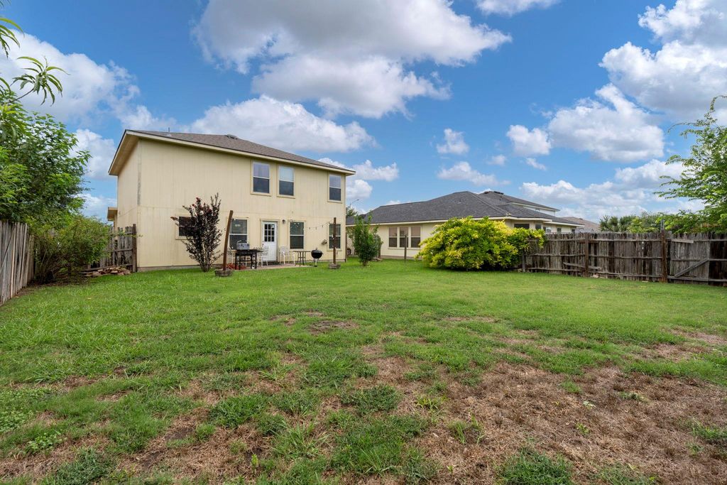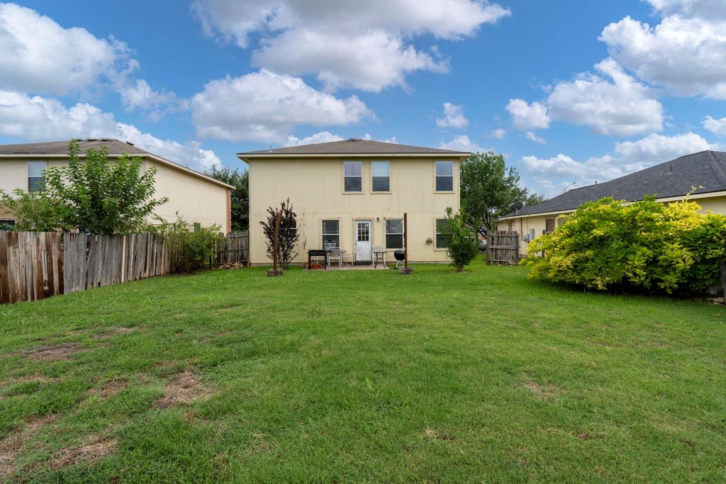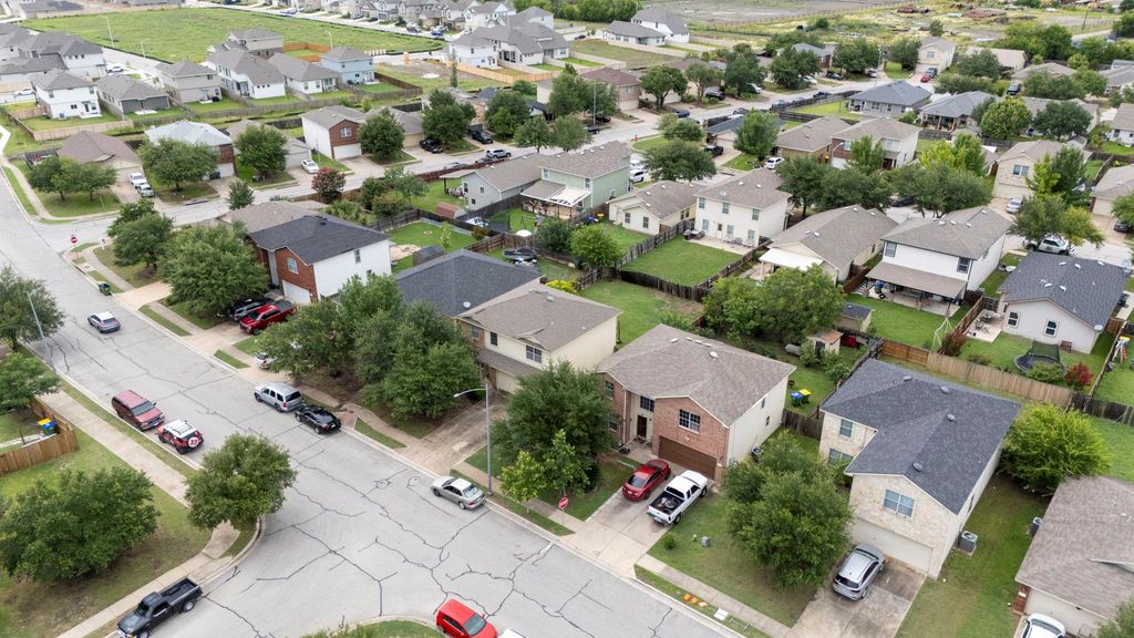 This property showcases beautiful large tile and rich cherry hardwood flooring throughout the downstairs living spaces. The open kitchen features stainless steel appliances, dark wood cabinets, and a lovely, bright breakfast nook. For more formal occasions, there is a separate dining room perfect for entertaining. Upstairs, you will find well-proportioned bedrooms that share a full bathroom. The master suite is a true retreat, offering double sinks in the bathroom and a large walk-in closet. Elegant cherry hardwood flooring extends throughout the entire upstairs. The home's location is incredibly convenient, with easy access to Highway 290 and toll roads, placing you just minutes away from Austin.