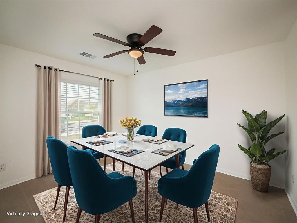 Charming 3-bedroom, 2-bath home offering 1,525 sq. ft. of comfortable living on a .15-acre lot. The inviting interior features arched doorways, a separate dining room, and a kitchen designed with energy-efficient appliances, granite countertops, designer wood cabinetry, and a convenient breakfast bar. Ceramic tile flooring enhances the entry, kitchen, and baths, while an attached two-car garage adds everyday convenience. The community offers a neighborhood park and playground, and the home is just a short walk from the high school.