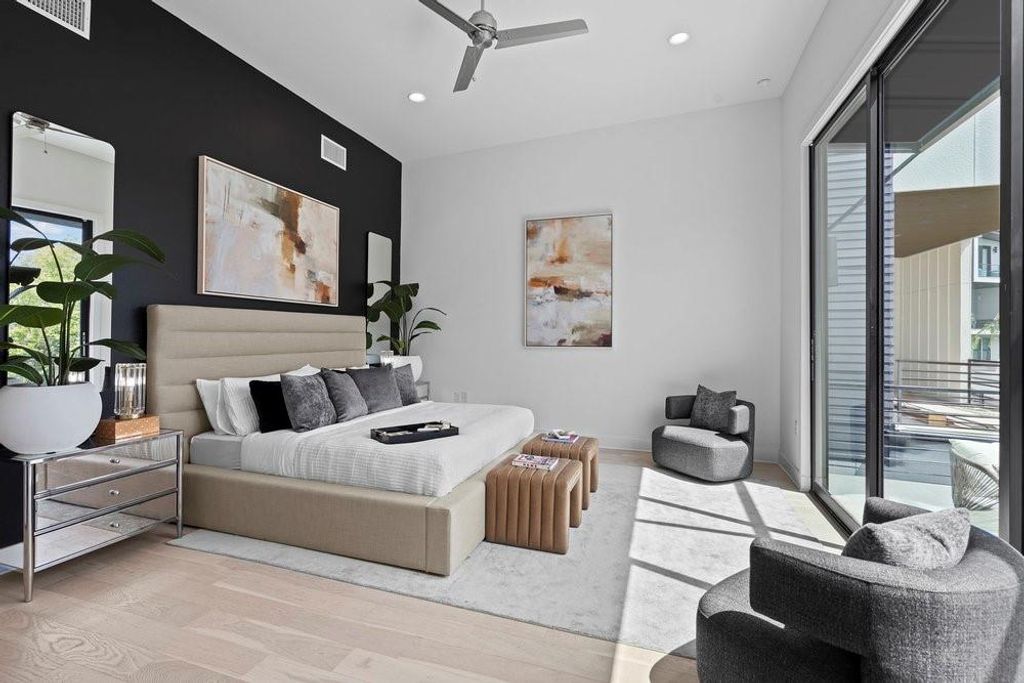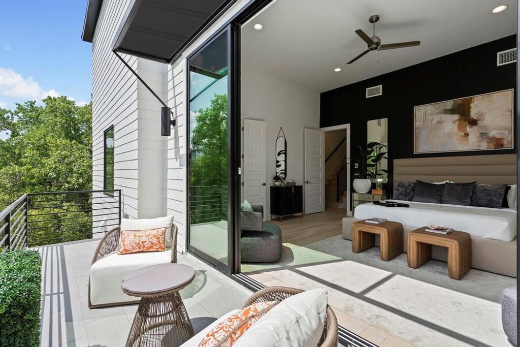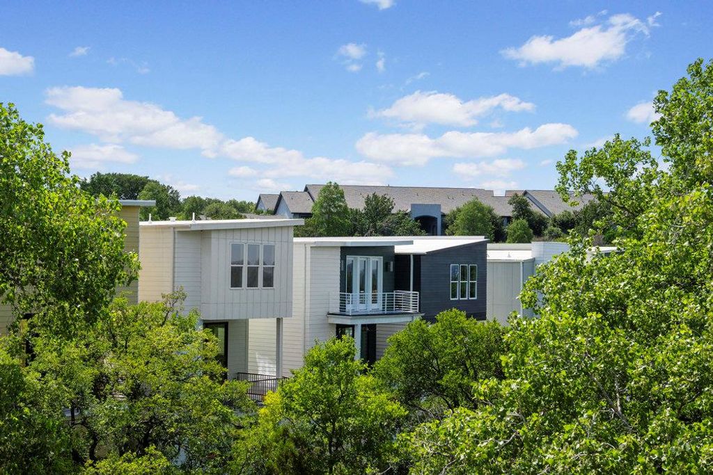 10 out of 10! Three story detached modern townhome that lives like a single family home, large yard, 2 decks, picturesque view of downtown, backs to greenbelt, high end finishes w/a soothing color palette. Light & bright w/ large picture windows + 2 sets of stackable sliding doors backing to peaceful scenery, 11 ft ceilings + wood floors throughout. Main living area downstairs w/a large living room, modern gas fireplace finished in Carrara marble, chef's kitchen with Thermador appliances, contemporary soft close cabinets, quartz countertops, breakfast bar + formal dining room, huge pantry, 2 car garage. Second floor primary suite w/ integrated indoor-outdoor living -10 ft stackable sliding glass doors opening to a deck overlooking mature trees + Country Club Creek. Primary bathroom is beyond luxurious w/ Carrara marble, free standing tub, spacious shower, 2 separated vanities, linen closet + large primary closet w/door to the laundry room for convenience. Two secondary bedrooms (use as an office/gym). Each bedroom has its own ensuite bathroom. Third floor has a gameroom w/stackable sliding glass doors, large deck with a view of the DT skyline. What a great place to entertain, especially at night with a backdrop of the city lights! Great sunsets. Lots of storage. Smart home. Tankless water heater. Security System. Wired for surround sound. Anderson wood windows. 8 ft doors. New construction just completed, warranty included. Intown Homes is a highly reputable builder that has been building in Texas for over 50 years. Located in The Park at Sunridge community w/an enclave of 18 homes & a pet friendly gated park. An architecturally beautiful new community surrounded by greenery, every home is unique. Emerging area with major development, including upcoming River Park (aka "East Side Domain") w/retail, light rail + trail system. Convenient location with close proximity to S. Congress (new HEB), DT, hike/bike trail, quick drive to airport. Landscaping maintained by HOA.