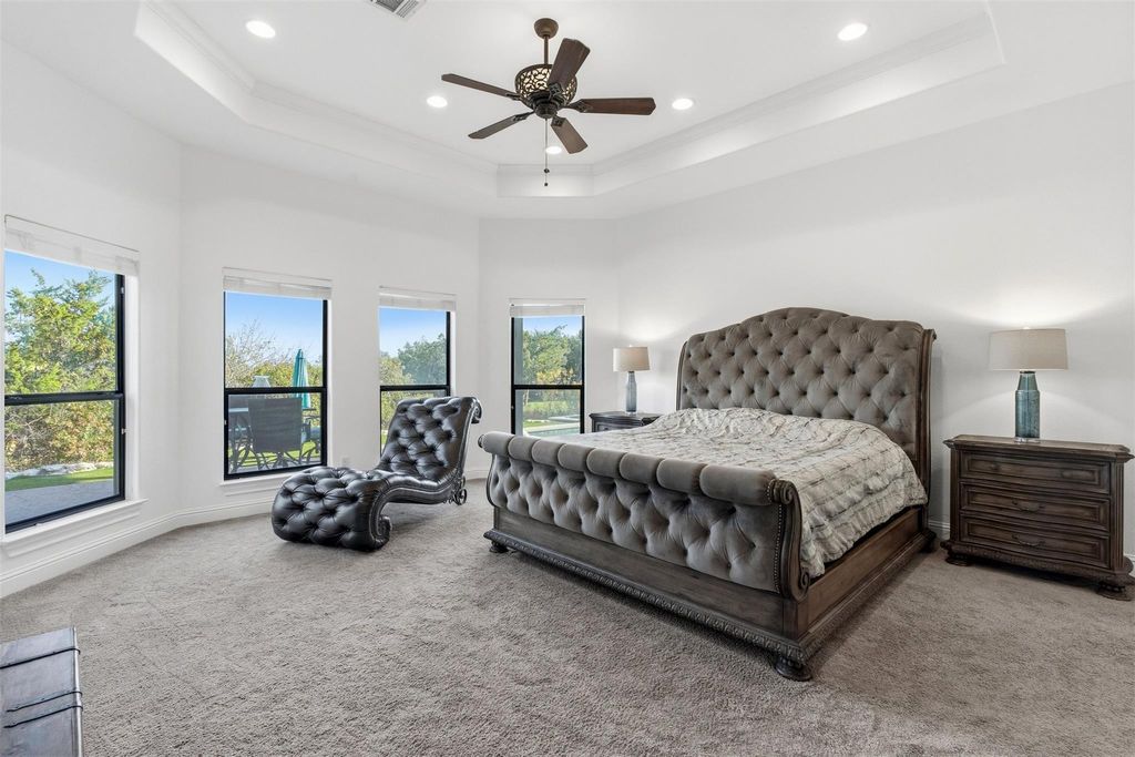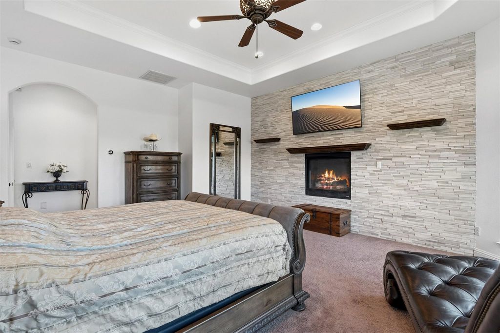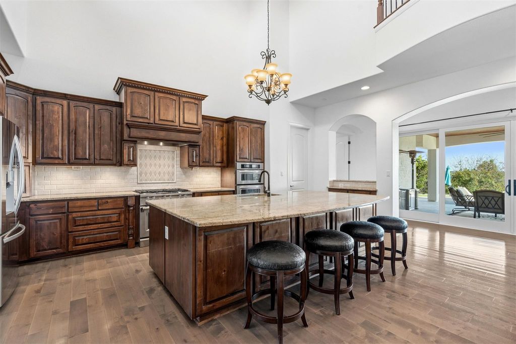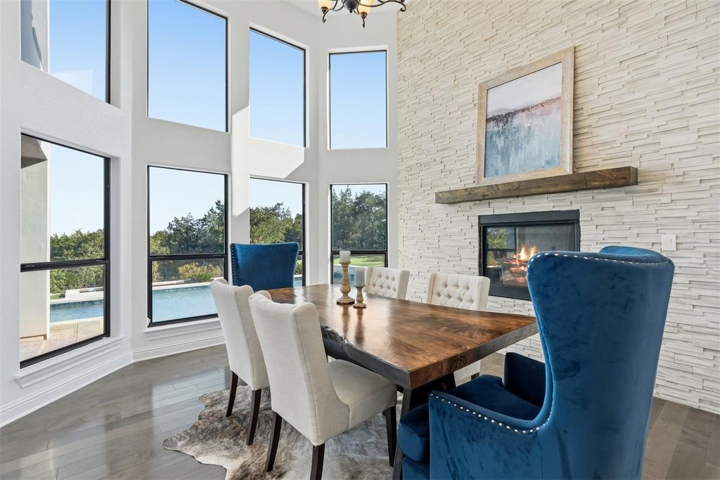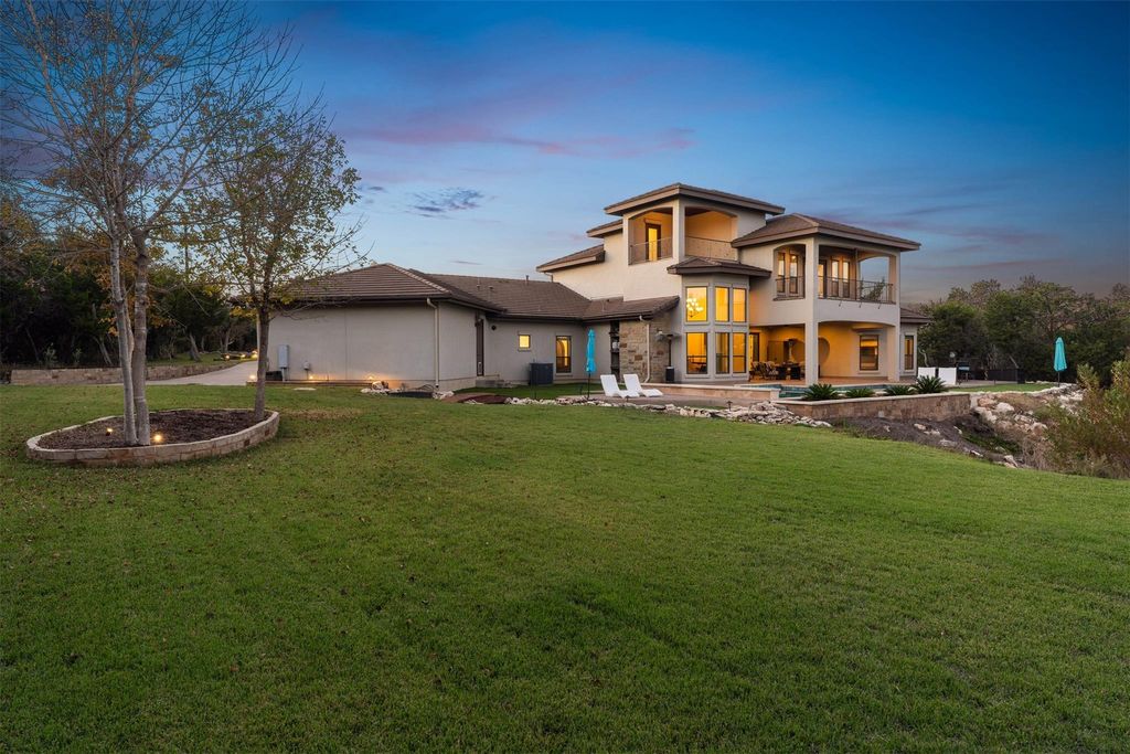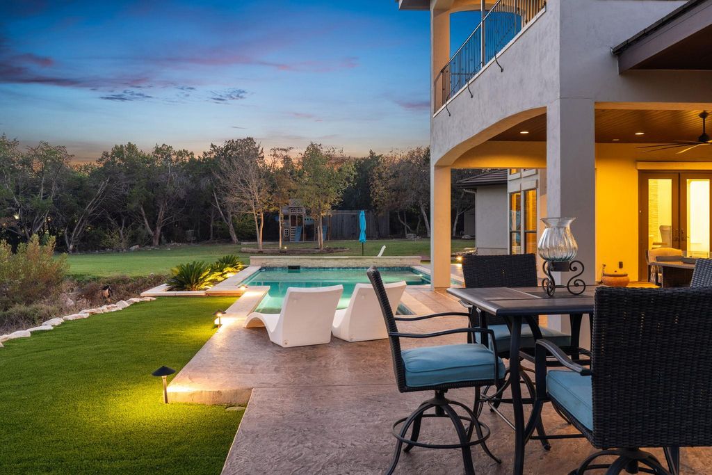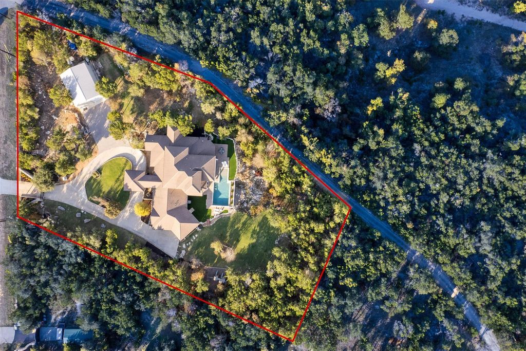 Just minutes from town, this gated estate features a 4-bedroom custom home, built with purpose at every turn. Knotty Alder millwork carries through the home, along with solid-plank wood floors, porcelain tile, Kichler lighting, Moen ORB fixtures, and a full suite of Kitchen Aid appliances. The gourmet kitchen sits at the center of the main level, surrounded by a dedicated office and a bonus room. Every bedroom has its own ensuite with a full tub and shower. The primary suite features a full steam shower by Mr. Steam, a built in safe, and a concealed passageway that leads from the closet to the upstairs hall. A 13x13 finished space off the closet offers extra storage and future options for expansion. The dining area centers around a gas fireplace and large windows overlooking the backyard. Upstairs, the large gameroom includes a wet bar with a beverage fridge and opens to a balcony that frames the hill country. Above it, the crow's nest patio area provides an elevated view across Misty Valley, a favorite spot during early mornings. The backyard continues the thoughtful design, with a 38,000 gallon pool with a sun shelf, 3 swim-up stools, a heater, and a dedicated propane tank. The patio area includes multiple outdoor seating areas surrounding the pool, easily connecting outdoor space to the home. Nearly one acre of landscaping surrounds the property with irrigation throughout, artificial turf near the pool, and a redirected wet weather creek that follows the natural grade. In addition to the 3-car garage, a 1,200-square foot workshop/toy barn can comfortably accommodate 4 additional vehicles. The workshop sits on a full concrete pad with power, epoxy floors, tall pass-through garage doors, and a center drain. The home is zoned to allow 1 horse, and includes a paddock adjacent to the workshop. In the end, it is simply a place that delivers more than what you expect at every turn.