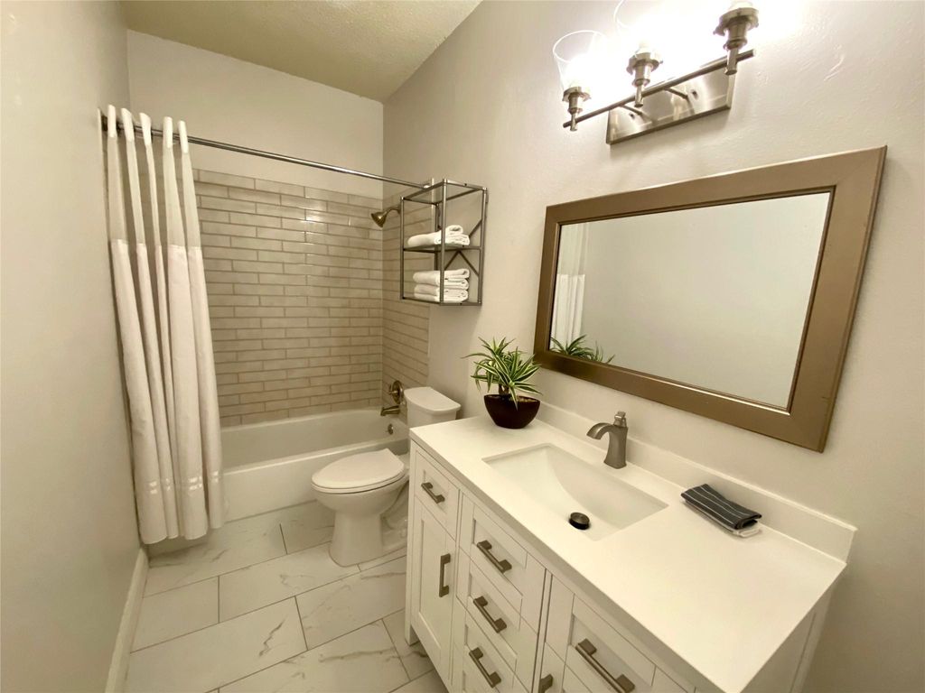 Beautifully updated ground-floor corner unit in Edge Creek Condominiums, offering direct access to the Greenbelt. This spacious 2-bedroom, 2-bath condo features over 1,000 sq. ft. and has been completely remodeled with modern finishes throughout. The kitchen boasts new Corian countertops, stainless steel appliances, updated cabinets, sink, disposal, and plumbing fixtures. Both bathrooms include new vanities, toilets, plumbing hardware, and custom tile work, with a stand-alone shower in the primary suite. Additional improvements include new doors and hardware, ceiling fans, light fixtures, fresh interior paint, wood laminate flooring in the living areas and bedrooms, and tile in the kitchen and baths. The fireplace has been retiled for a sleek look. Enjoy walk-in closets in both bedrooms, a separate utility room, breakfast bar, dining area, and private patio access from the primary bedroom. Relax on the secluded back patio facing the Greenbelt. Community amenities include a pool, tennis courts, and nearby hike-and-bike trails. Conveniently located just minutes from Loop 1, ACC, The Domain, and a variety of shopping, dining, and entertainment options. A must-see condo in a prime location!