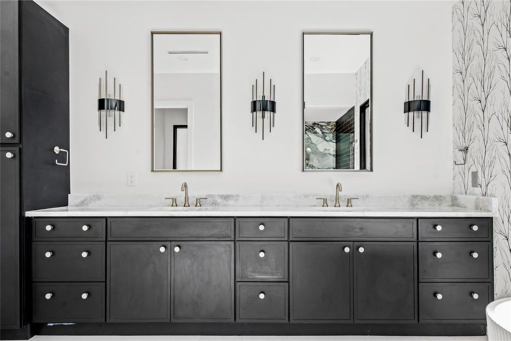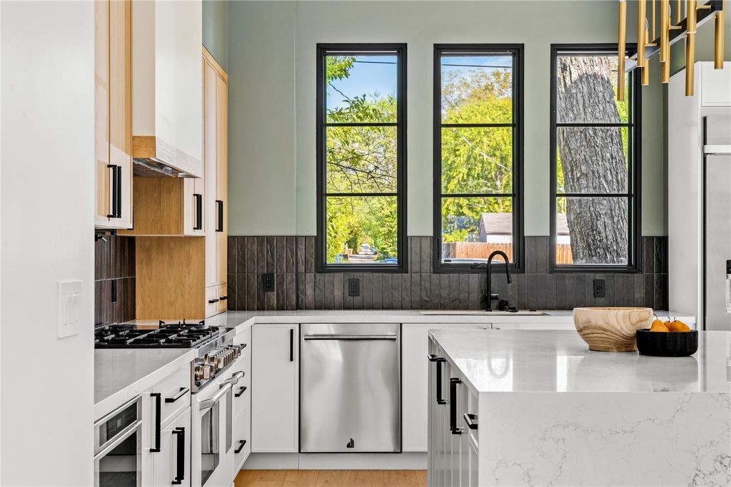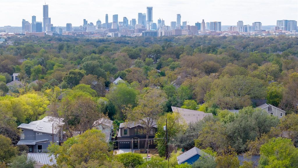Experience modern design and an impressive finish-out in this newly constructed 5-bedroom, 4-bath home in the heart of Hyde Park. Offering 3,215 sq ft of well-planned living space, this residence delivers comfort, function, and style across two levels. The main level features an open layout that naturally connects the living, dining, and kitchen areas. Anchored by a striking Italian plaster fireplace, the living room is designed for everyday living and easy entertaining. The kitchen pairs custom oak and white cabinetry with Altais Quartz countertops and a large island that keeps the space both practical and inviting. A 48" Bertazzoni double oven range, built-in appliances, and generous storage complete the space. The primary suite is privately positioned on the main level with a spacious walk-in shower, fluted soaking tub, and marble countertops. A secondary bedroom and full bath on the main floor offer flexibility for guests, extended family, or a dedicated office. Upstairs hosts three additional bedrooms including one with an ensuite bath. A secondary living area provides a natural gathering space. The outdoor environment extends daily living. A generous yard sets the stage for play, gardening, or future customization, while the pool, deck, and cabana create a ready-made setting for hosting or relaxing. The built-in Mont Alpi grill adds a functional touch for weekend cooking and warm-weather evenings. Additional highlights include 7" engineered oak flooring throughout, a well-designed laundry and mud space with black quartz counters, and curated countertop selections in each bathroom. Located just blocks from Shipe Park and close to Austin favorites along Duval, this home blends the ease of new construction with the character of one of Central Austin's most beloved neighborhoods.