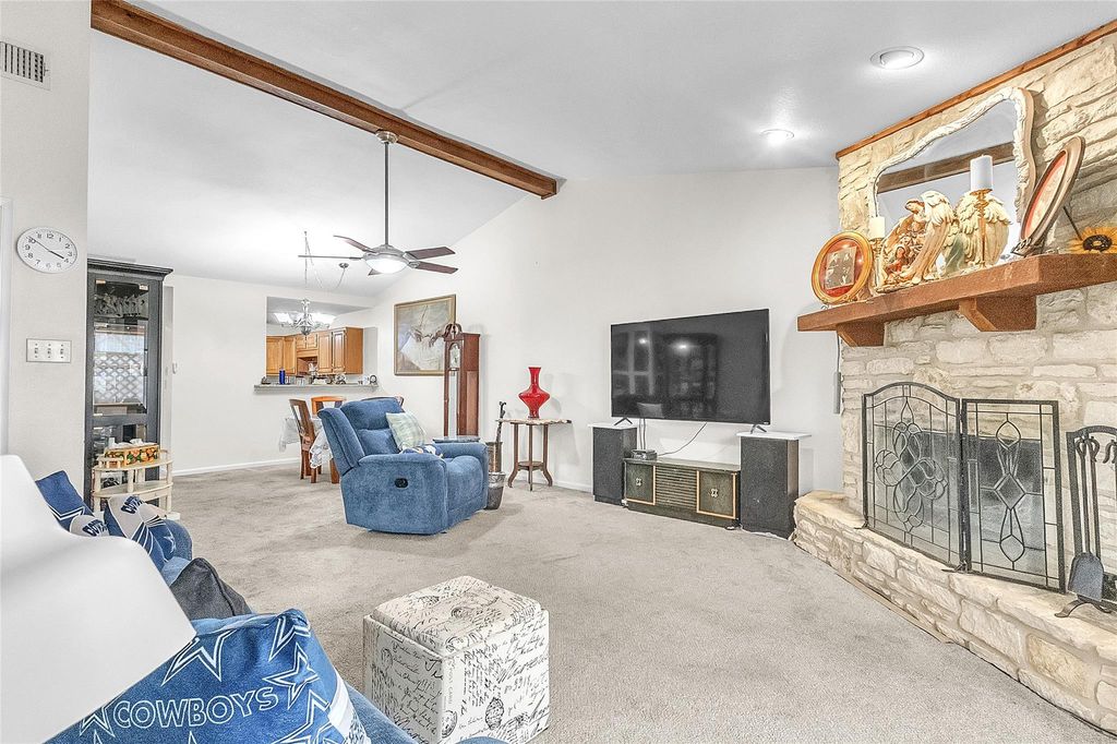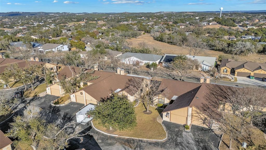 Cozy one-story 3 bedroom 2 full bathroom home with built-out covered patio. Located in quiet, private hill country community near lakes, parks and schools. Free-standing kitchen cabinets, glass fireplace cover, refrigerator do not convey. Furniture, washer & dryer can convey, negotiable.