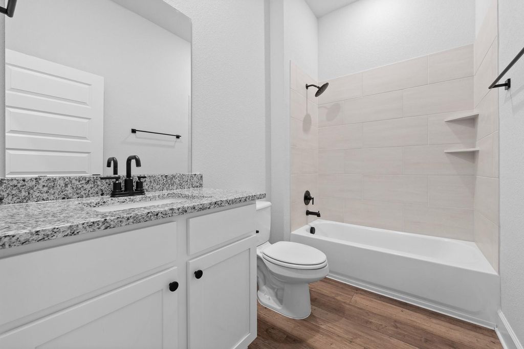 The Bowie is a charming single-story plan offering 3 bedrooms, 2 bathrooms at Whisper Valley. Inside, you'll find an open-concept living space with an oversized family room seamlessly connecting to a dining nook and a chef-ready kitchen equipped with stainless steel energy-efficient appliances, white granite countertops, sleek white cabinetry with crown molding, and a spacious pantry. The private master suite features high ceilings, a luxurious dual-sink vanity, walk-in shower, and generous walk-in closet, while the two secondary bedrooms provide abundant room for family, guests, or a home office. This home truly offers the best of both worlds - a stylish and sophisticated living space, paired with all the practical amenities necessary for comfortable everyday living. Additional amenities include a covered back patio with green belt views for outdoor living, a laundry room off the garage, ceiling fans throughout, and included professional front-yard landscaping"”luxury upgrades built in as standard. As part of Whisper Valley's unique ecofriendly master plan, this home is pre wired for electric vehicle charger in the garage, supported by geothermal HVAC, solar panels, and spray-foam insulation. Residents enjoy resort-style amenities such as a swimming pool, fitness center, dog park, organic gardens, over 700 acres of green space with trails, and the Discovery Center with wellness programming"”all designed for sustainable and future-ready living.