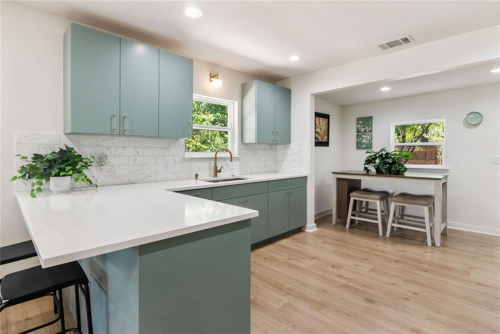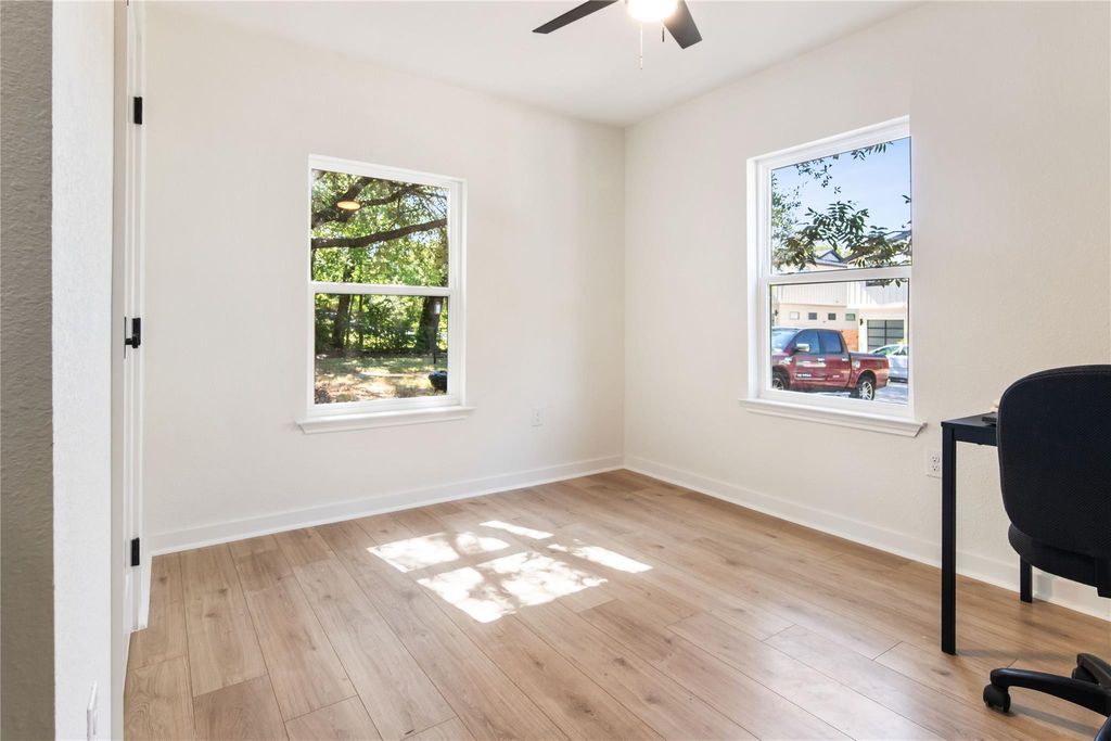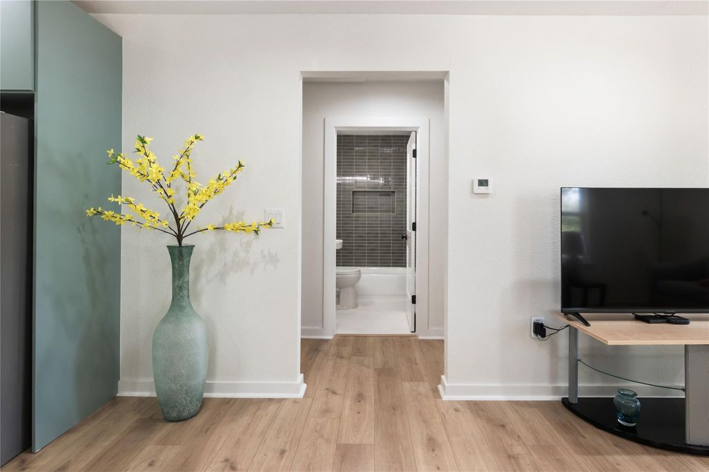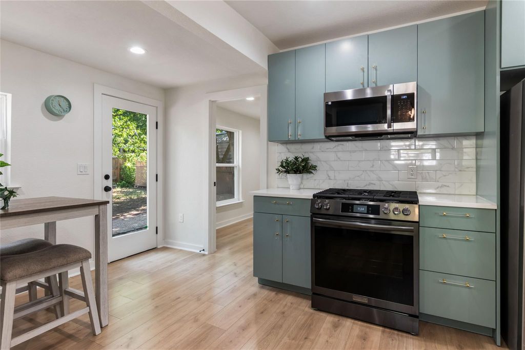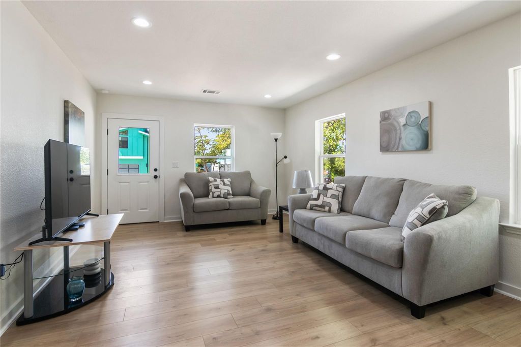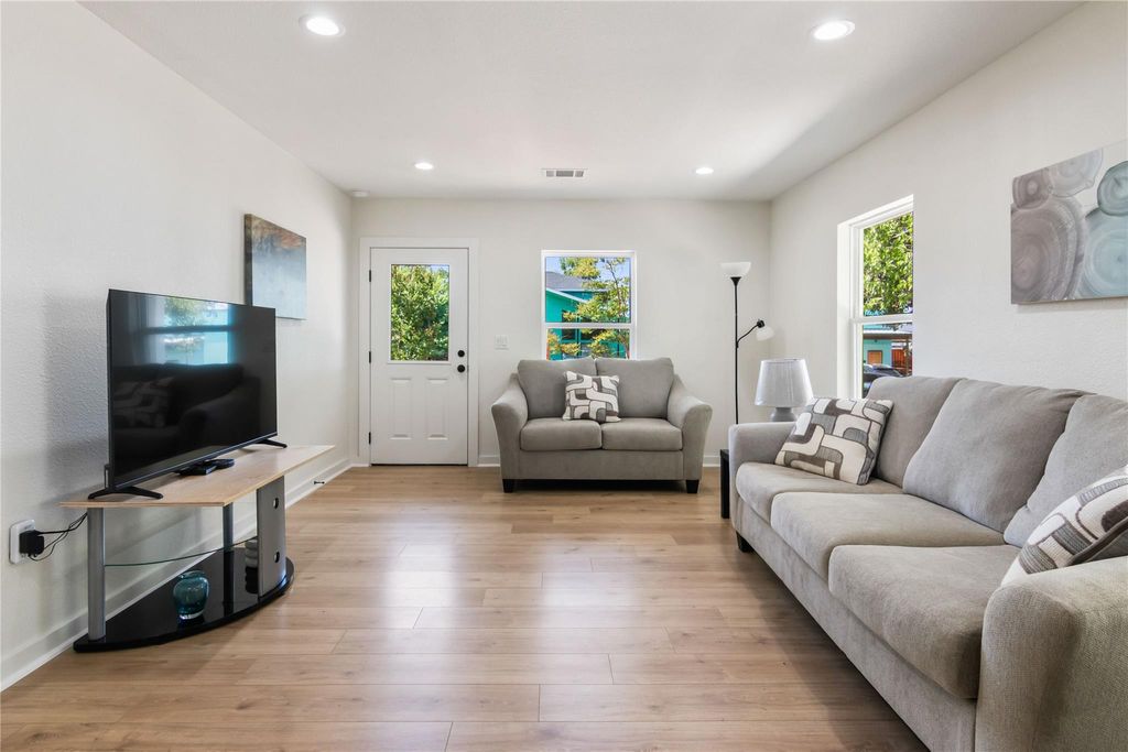Full, down-to-the-studs remodel. Every inch of the home has been meticulously restored, blending classic cottage charm reimagined for modern living. Step inside to a bright, open layout finished in soft neutral tones, white oak flooring, and abundant natural light. The kitchen is a showpiece with custom cabinetry, quartz counters, a farmhouse sink, brushed brass hardware, and stylish ceramic backsplash. The bathroom continues the luxury feel with a ribbed thyme glossy tile surround, quartz vanity, and champagne bronze fixtures. Thoughtful touches carry throughout giving the home its warm and inviting cottage feel. Outside, a covered front porch and a level, tree-shaded yard offer plenty of space for entertaining, gardening, or relaxing at home. With all systems brand new and every surface refreshed, this home delivers both beauty and peace of mind. Perfect as a starter home, a cozy downsizing retreat, or an opportunity to own just minutes from UT Campus. Major Mechanical Updates: 30 year architectural roof (2025), new James Hardie siding (2025), new energy-efficient windows (2025), new spray foam insulation (2025), full interior rewire (2025) and exterior panel service upgrade (2022), all-new plumbing (drain and supply lines) (2025), and HVAC (2025).