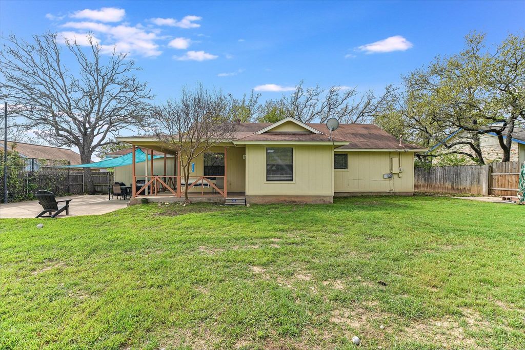 This wonderful one story home is located on a large lot with a great back yard. This home has an open floor plan with hardwood floors, stone fireplace, updated granite counters and lots of windows for natural light. There are lovely covered porches opening to a private back yard. There have been multiple updates and upgrades including outside HVAC & Attic Air Handler replaced in June 2024, Dishwasher replaced in 2023, Entire Drain Field for Septic replaced July 2024 plus tank pumped. Fresh paint throughout, make ready completed, this home is ready for a new owner. This is a lovely home with wonderful access to the community park and Lake Austin. See it today and make it your own!