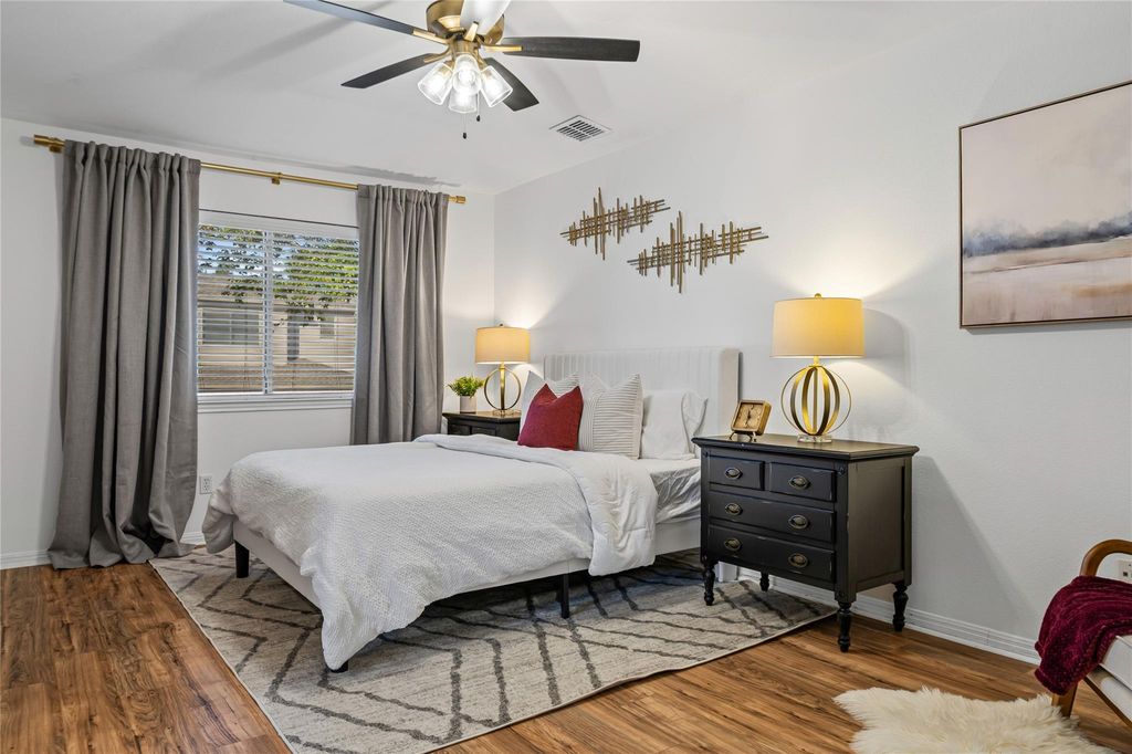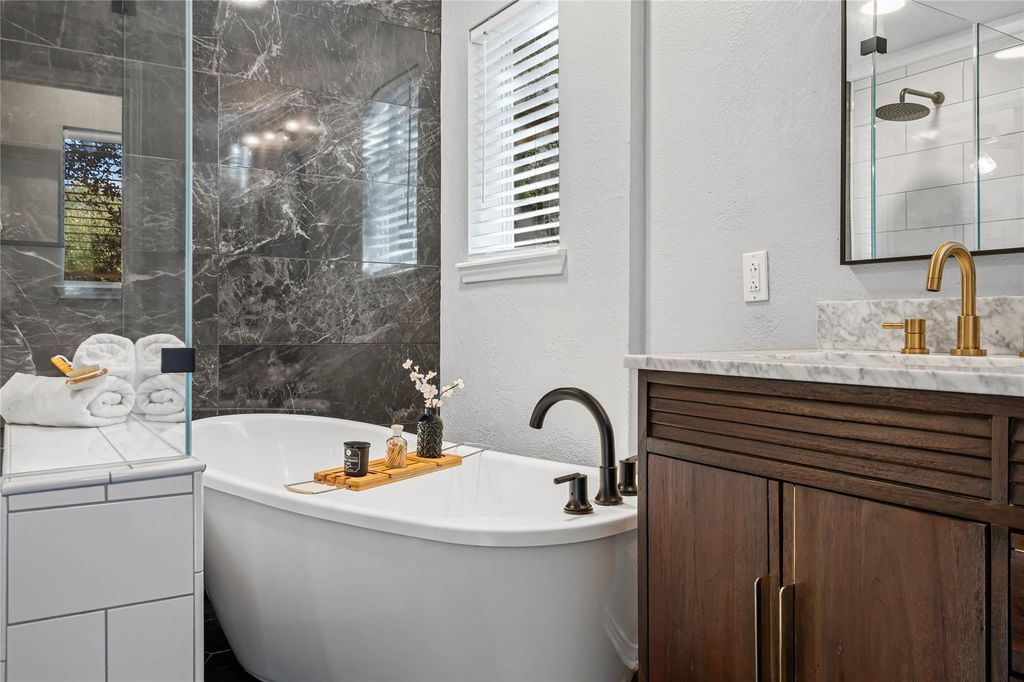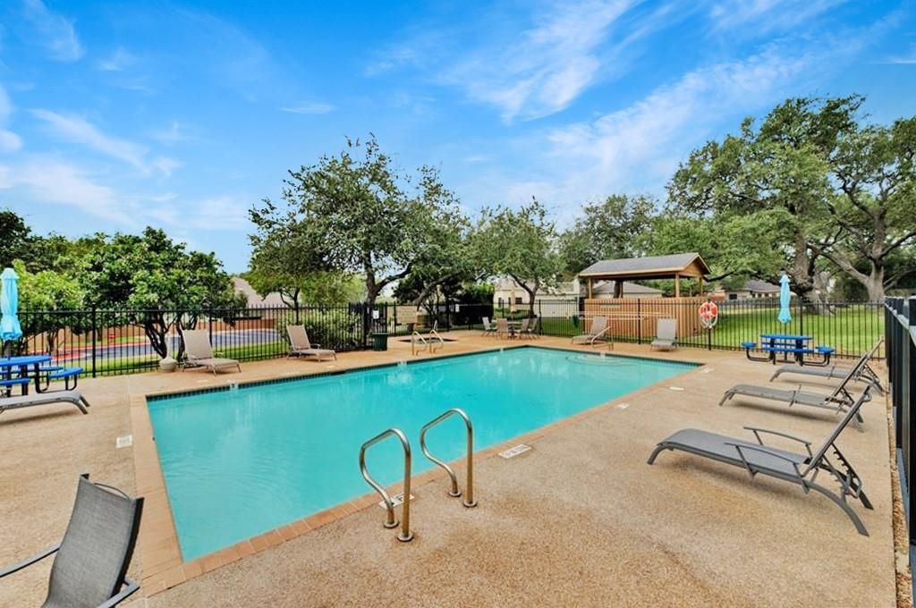 Beautifully renovated 2-story home in the highly sought-after Laurels Condominiums. This 3-bedroom, 2.5-bath residence offers an open floor plan with abundant natural light throughout. The inviting living area features high ceilings, a modern tile-surround fireplace, and flows seamlessly into the light and bright eat-in kitchen with granite countertops and ample cabinetry. Enjoy entertaining on the private fenced patio with a new fence for added privacy. Upstairs, the spacious primary suite includes a luxurious en-suite bath with a soaking tub, walk-in shower, dual vanity, and generous walk-in closet. Two large secondary bedrooms and a full hall bath complete the upper level. Community amenities include a swimming pool and park area. Excellent location just minutes to The Shops at Arbor Trails, Sunset Valley, and a short drive to downtown Austin. Zoned to the award-winning Patton Elementary, Small Middle, and Austin High School trio.