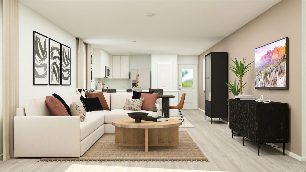 The Idlewood - This single-level home showcases a spacious open floorplan shared between the kitchen, dining area and family room for easy entertaining, along with access to an outdoor space. An owner's suite enjoys a private location in a rear corner of the home, complemented by an en-suite bathroom and walk-in closet. There are two secondary bedrooms at the front of the home, ideal for household members and overnight guests. Photos are for illustrative purposes only. Estimated Completion March 2026.