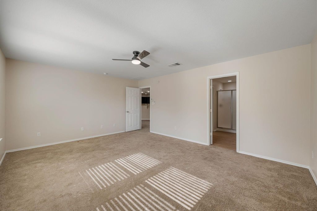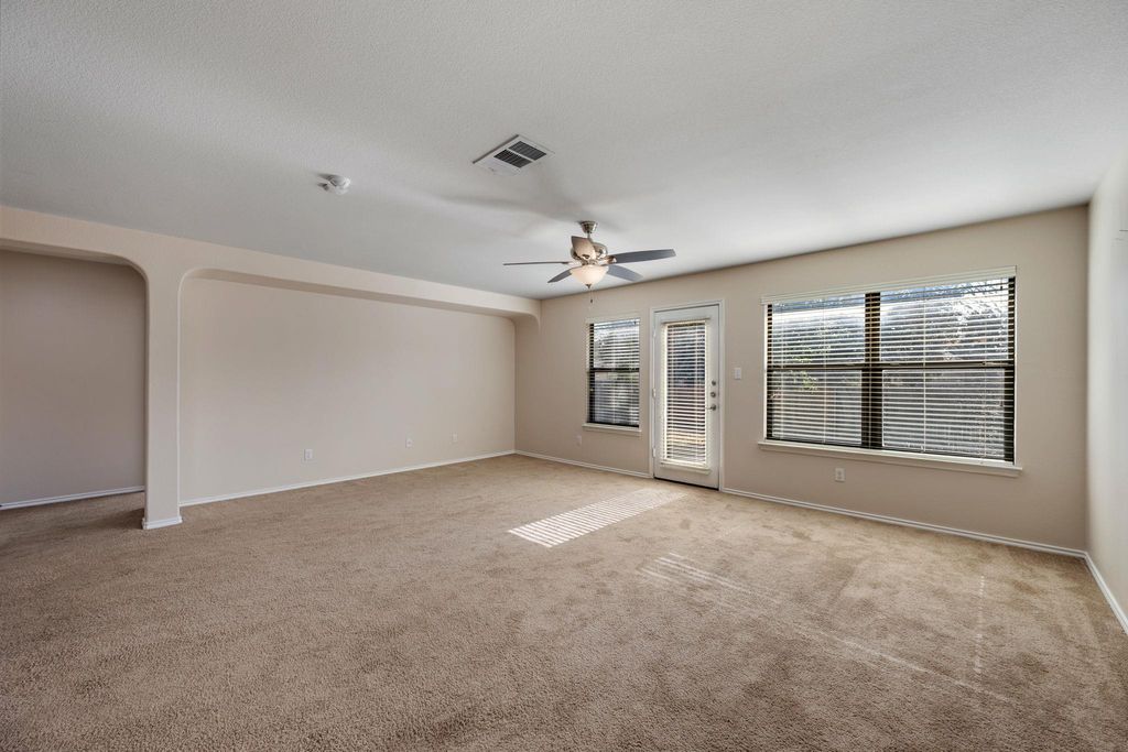 This updated single-story home offers a rare layout in Lakes of Northtown with four bedrooms, three full bathrooms, and 2,044 square feet of open, functional living space. Natural light fills the main living areas, creating a comfortable setting for everyday living and entertaining. The kitchen features stainless steel appliances and opens to the living and dining areas. With zero interior steps, the home delivers true single-level convenience. The fenced backyard is ideal for outdoor gatherings, and the two-car garage adds everyday ease. Located directly across from the community park, the home offers green space views and easy access to outdoor recreation. Quick access to I-35 makes commuting simple, with nearby schools, shopping, and dining just minutes away.