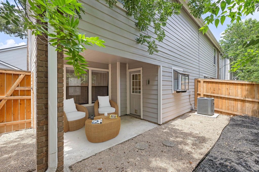 Tucked away in a quiet, tree lined community just minutes from UT and downtown Austin, this delightful 2 bedroom, 2 bath condo offers the perfect blend of city convenience and peaceful living. Located conveniently close to the Crestview rail station, commuting or exploring the best of Austin couldn't be easier. Step inside to a well designed layout featuring an open concept living, dining, and kitchen area on the main floor-perfect for entertaining or cozy evenings at home in front of the fire. A conveniently located washer and dryer closet adds everyday functionality. Upstairs, you'll find two spacious bedrooms and two full bathrooms, providing privacy and comfort for both residents and guests. Outside you'll find a fenced yard with a covered patio and is steps away from the tranquil community pool. Whether you're a first time buyer, downsizer, or investor, this low maintenance condo offers unbeatable access to local restaurants, music venues, shops, and all that Austin has to offer-without downtown noise. Don't miss this rare opportunity to own a hidden gem in the heart of Austin!