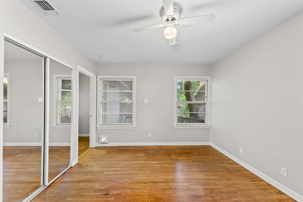 Welcome to this delightful 2 bedroom, 1 bathroom home in the heart of Crestview! Nestled on a generous .1636-acre lot and surrounded by mature trees, this property offers shade, privacy, and timeless curb appeal. Inside, you'll find original hardwood floors, designer paint throughout, and a light-filled layout that feels both cozy and refreshed. The home comes move-in ready with a washer, dryer, and refrigerator included, a perfect blend of vintage charm and everyday convenience. Step outside to enjoy a spacious fenced backyard with a lush garden and plenty of room to relax or entertain. The detached garage provides great flexibility and is ideal for storage, a workshop, or future studio space. Located just a half block from Fresh Plus, groceries are a 3 minute walk away. Brentwood Park, popular local cafes and restaurants, and highly-rated and newly-renovated Brentwood Elementary are also in short walking distance. This central Crestview gem is a perfect spot to enjoy the easily accessible amenities of urban living in the middle of a quiet, comfortable and secure neighborhood. Don't miss this opportunity to own a picture-perfect Crestview gem. Schedule your private showing today!