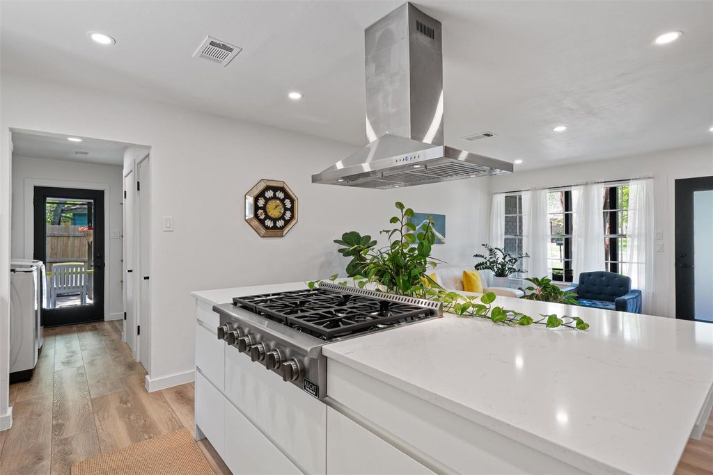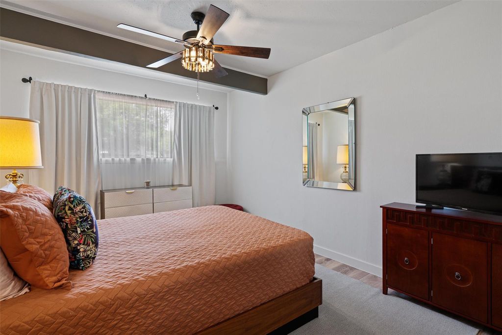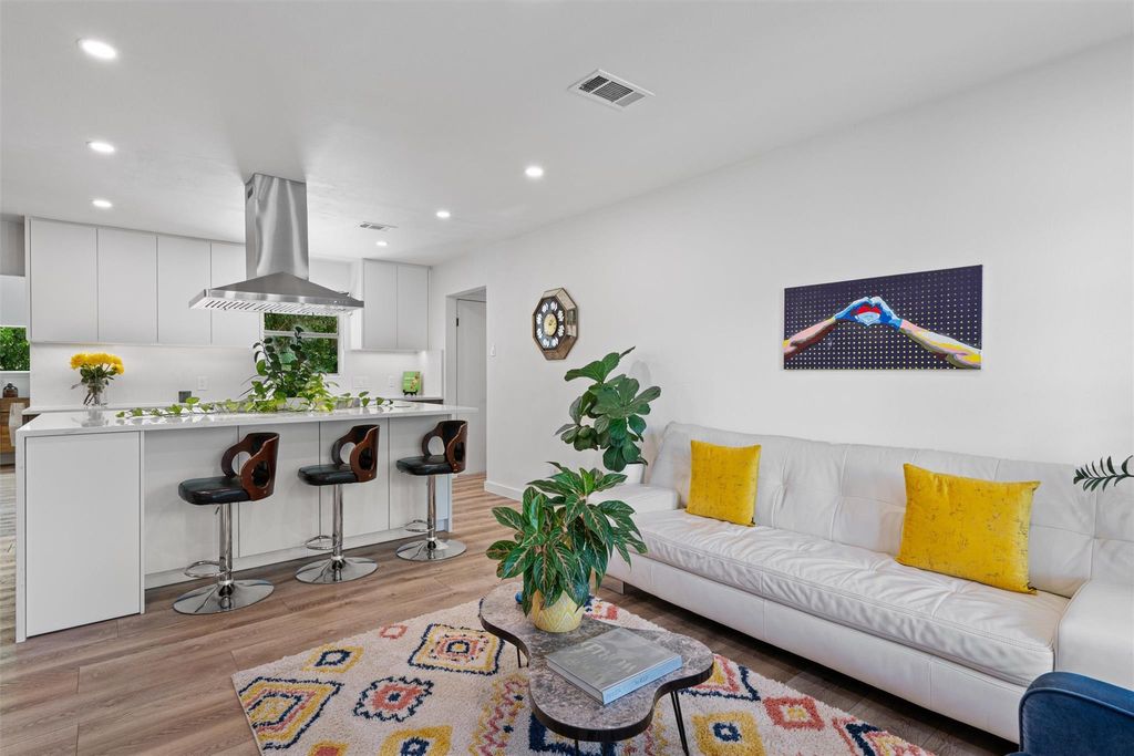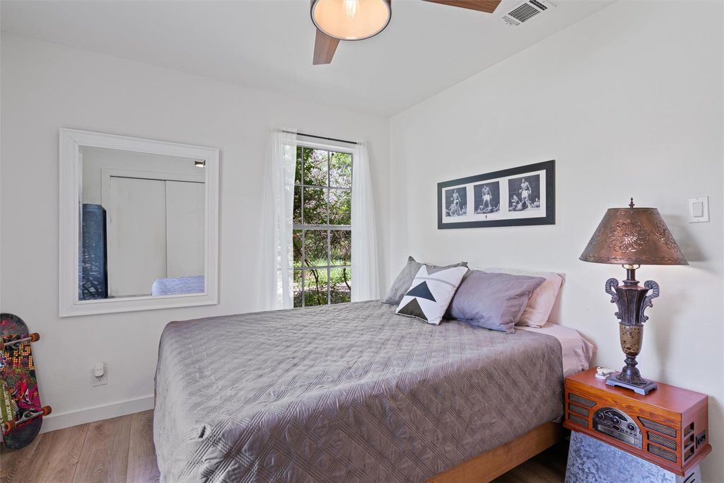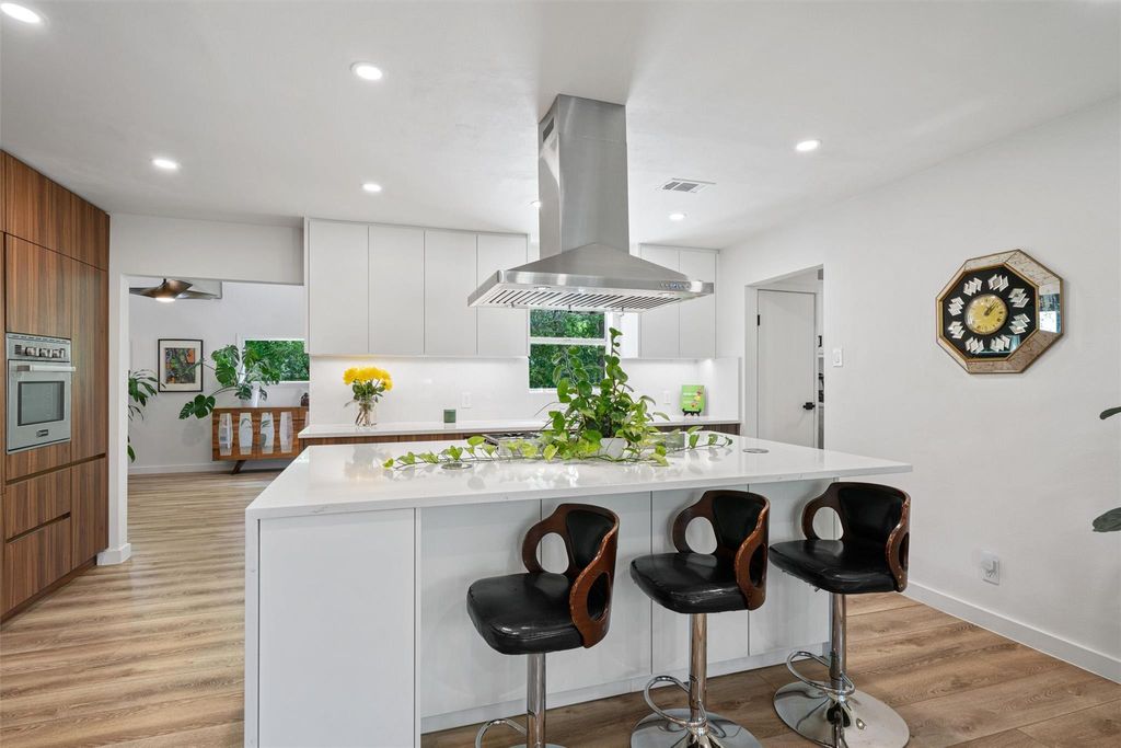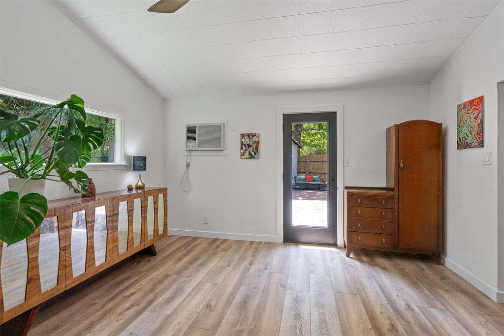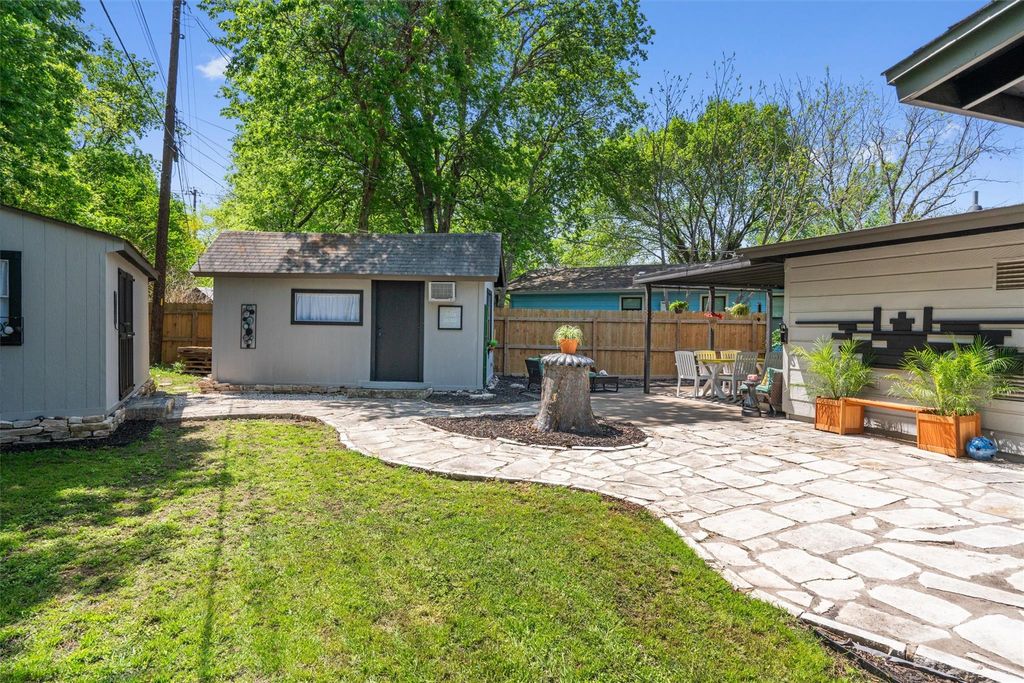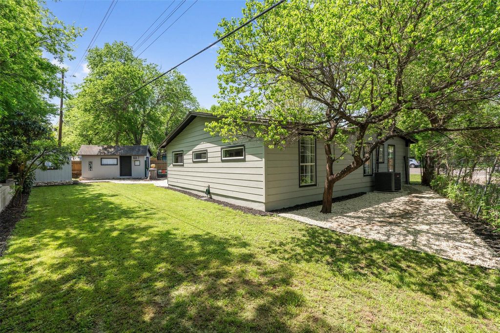 Welcome to Leaning Oak Cir, the friendliest little cul-de-sac in Texas! Deep in the heart of the '04, this home has easy access to grocery, shopping, hike and bike trails, Zilker Park, and all those famous S Lamar hotspots! Contemporary sophistication meets mid century charm in this immaculate 4 bedroom home which also boasts over $150k in recent renovations, including a new main sewer line! Custom wood paneling by Grip Grain Woodwork, recent int & ext paint, LVP floors, new water heater(2023), new HVAC(2024), and sparkling bathrooms with floor to ceiling walk in showers! As you enter the home you are greeted by the brand new gourmet kitchen featuring Leicht cabinetry, quartz countertops, SS appliances, and center island with waterfall edge. The sprawling layout gives you privacy but also has a perfect setup for entertaining a large group utilizing the jumbo family room. The private master bedroom is located on one end of the home with the remaining bedrooms on the other side. Relax in the backyard with your morning cup of coffee under the covered porch or throw the party of the year with all of the extra space in this manicured backyard! Two detached studios are ready for you to add your personal touches on your future office, gym, cave, or ADUs.