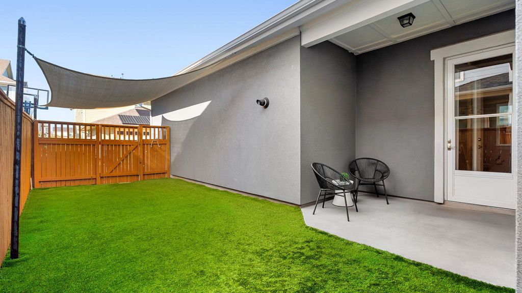 Welcome to this exceptional Mueller home perfectly positioned right across from John Gaines Park. With 3 bedrooms plus a dedicated study, multiple living areas and 2.5 baths, this residence combines thoughtful design, modern comforts & timeless elegance. The home features hardwood floors throughout both levels, fresh interior paint, & an abundance of natural light that pours in through expansive windows. The inviting entryway is flanked by a private office on one side and flex room on the other side for a formal dining room or second living. The chef-inspired kitchen features an oversized island, granite countertops, stainless steel appliances, & exceptional storage with extensive cabinetry and ample counter space. The spacious living room overlooks the private, fully-turfed backyard"”your own low-maintenance outdoor retreat. Upstairs, the generous primary suite offers a serene escape complete with a private balcony showcasing picturesque views of the park. The luxurious en suite bathroom features dual vanities, walk-in shower, soaking tub, & a large walk-in closet. A versatile flex space provides room for an additional living area, playroom, or media space, while the secondary bedrooms and full bathroom are thoughtfully tucked away on the opposite side for added privacy. The upstairs laundry room adds everyday convenience. Additional upgraded features in this home include an oversized garage, upgraded shingle roof, screen doors, sail shade & a new HVAC. The Mueller community offers an unparalleled lifestyle, featuring two pools, miles of hike-and-bike trails, playgrounds, sand volleyball courts, and a vibrant community garden. Just minutes away are beloved neighborhood amenities including the weekly farmer's market, Alamo Drafthouse, Thinkery, H-E-B, & a variety of acclaimed local dining options such as Chuy's and L'Oca d'Oro. With effortless access to UT, Downtown Austin & The Domain, this location delivers both convenience and exceptional connectivity.