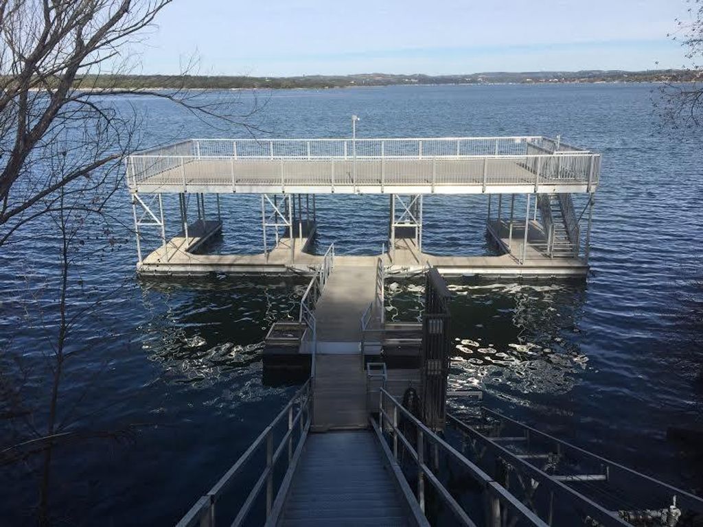 Rare opportunity to own a ground-level, single-story condo with zero stairs in the sought-after Villas on Travis! This 2-bedroom, 2-bath unit features spacious walk-in closets, wraparound balconies, and an open floor plan with wood floors throughout. Enjoy stunning lake views and easy access from the first-level entry. The community offers resort-style amenities, including 2 lakeside pools, a fitness center, tennis, pickleball, and basketball courts, a sundeck, boat dock, and lake access via tram. The HOA fee covers all utilities "” including water, internet, cable, Wi-Fi, and trash "” providing convenience and exceptional value. This is a truly unique, stair-free unit in a gated waterfront community just minutes from Lakeway and Austin.