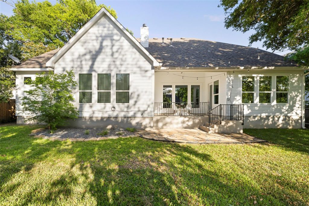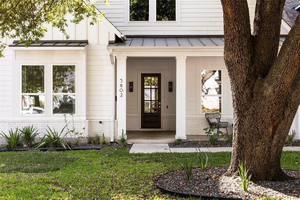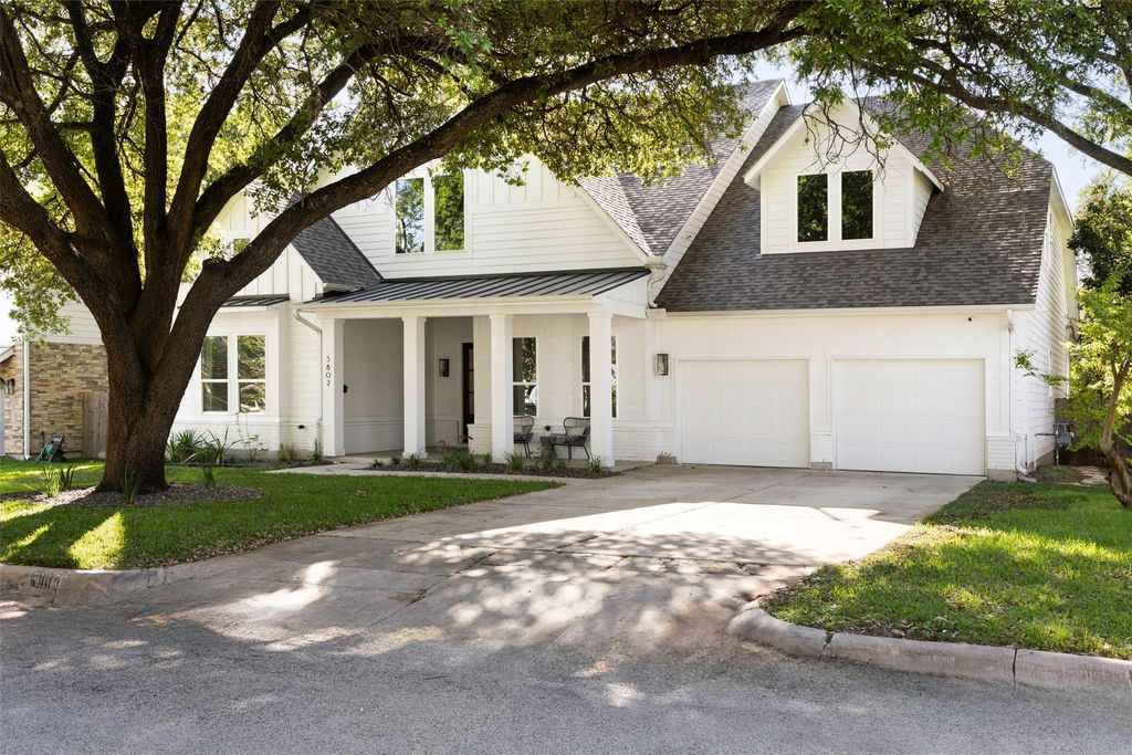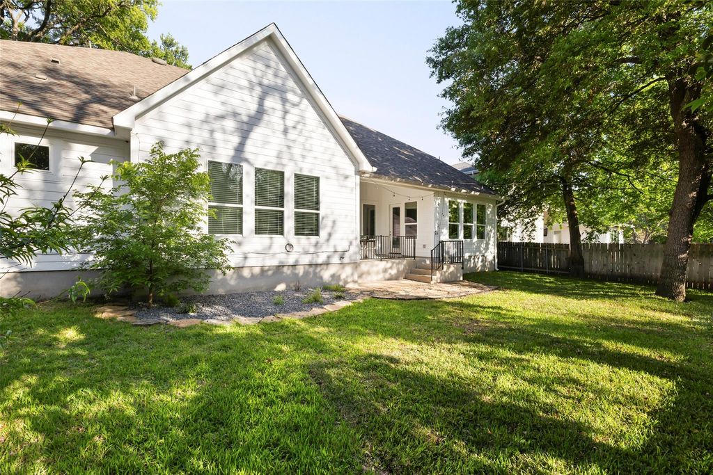 Introducing a stunning modern farmhouse completed in 2019, ideally situated in the sought-after north central region of Austin. This residence encompasses 4,078 square feet and showcases a thoughtfully designed floor plan tailored for contemporary living. Upon entry, you are welcomed into a private office and an expansive hallway adorned with a beamed ceiling, which leads to a bright and inviting family room featuring a stately brick fireplace. The open-concept kitchen and dining area provide picturesque views of a lush backyard, enhancing the seamless indoor-outdoor living experience. The primary suite, along with two additional bedrooms, is conveniently located on the main floor, each equipped with its own en suite bathroom, ensuring comfort and privacy. Additionally, a separate media room on this level offers an ideal space for entertainment. The second floor boasts a fourth bedroom, a full bathroom, and a generously sized second living area, complemented by a small playroom or storage room. Noteworthy features of the home include a well-appointed kitchen with a walk-in pantry, extensive storage solutions throughout"”including a spacious laundry room and a built-in desk area"”a smart drop-off zone accessible from the two-car garage, updated lighting in the living and dining areas and large walk-in closets in all bedrooms. Outside, a covered back porch overlooks a sizable yard that offers ample space for a swimming pool, with plans readily available. This residence artfully combines modern amenities with thoughtful design, all within a vibrant community just minutes from dining, shopping, and the cultural offerings of Central Austin. This home truly caters to the needs of modern living, making it an exceptional choice for discerning buyers.