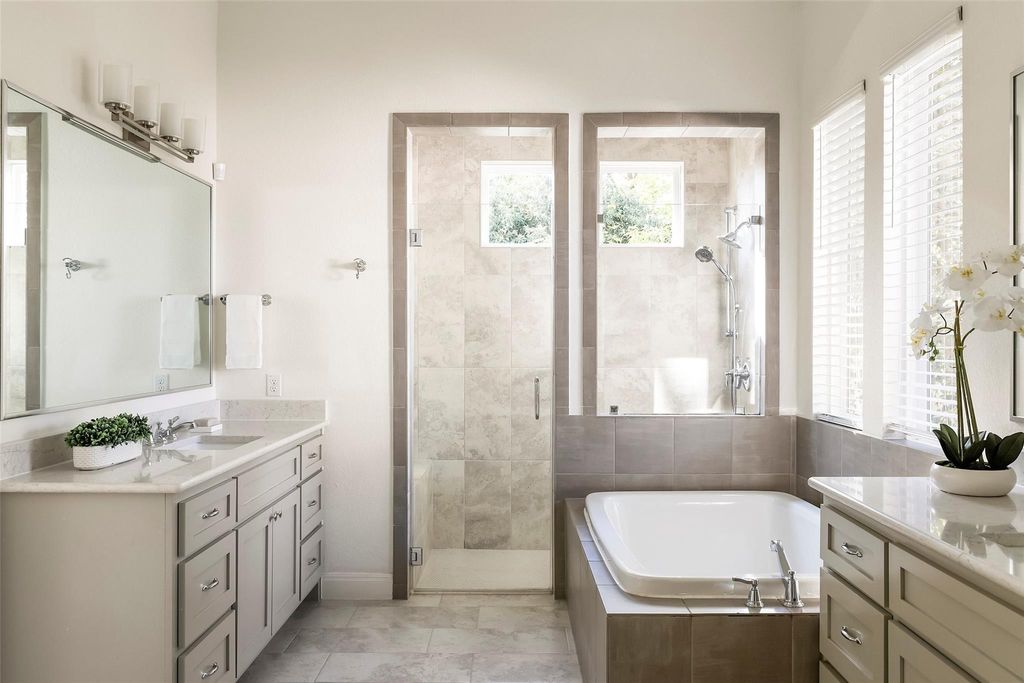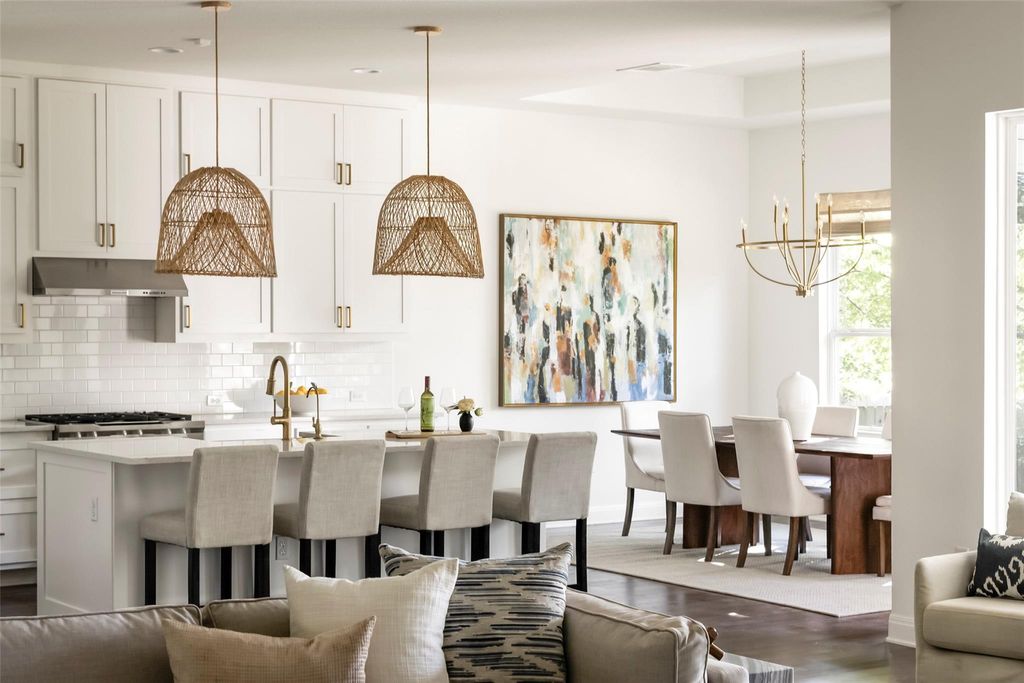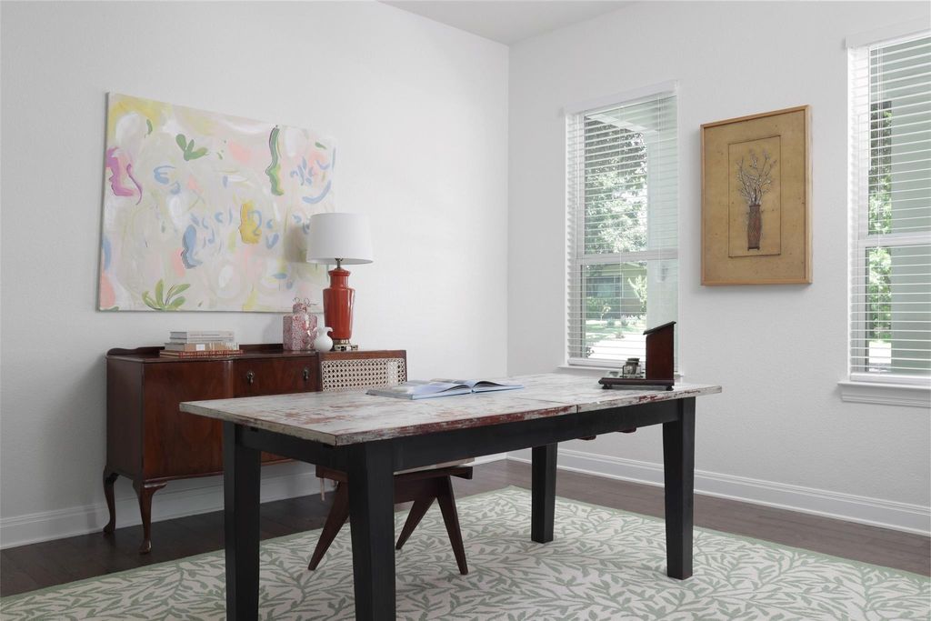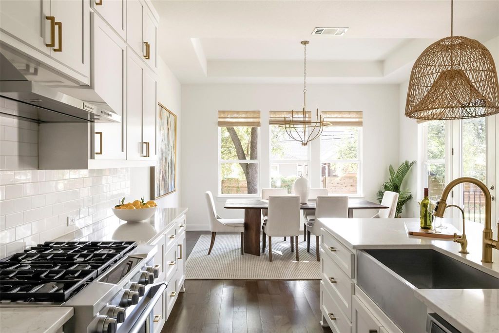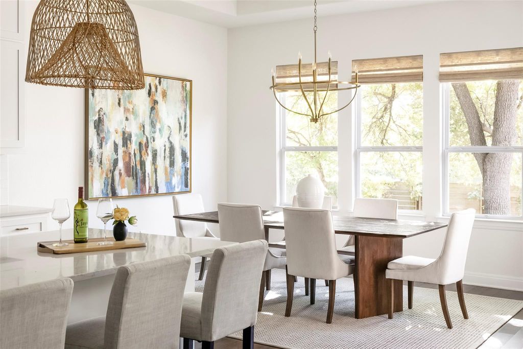 Introducing a stunning modern farmhouse completed in 2019, ideally situated in the sought-after north central region of Austin. This residence encompasses 4,078 square feet and showcases a thoughtfully designed floor plan tailored for contemporary living. Upon entry, you are welcomed into a private office and an expansive hallway adorned with a beamed ceiling, which leads to a bright and inviting family room featuring a stately brick fireplace. The open-concept kitchen and dining area provide picturesque views of a lush backyard, enhancing the seamless indoor-outdoor living experience. The primary suite, along with two additional bedrooms, is conveniently located on the main floor, each equipped with its own en suite bathroom, ensuring comfort and privacy. Additionally, a separate media room on this level offers an ideal space for entertainment. The second floor boasts a fourth bedroom, a full bathroom, and a generously sized second living area, complemented by a small playroom or storage room. Noteworthy features of the home include a well-appointed kitchen with a walk-in pantry, extensive storage solutions throughout"”including a spacious laundry room and a built-in desk area"”a smart drop-off zone accessible from the two-car garage, updated lighting in the living and dining areas and large walk-in closets in all bedrooms. Outside, a covered back porch overlooks a sizable yard that offers ample space for a swimming pool, with plans readily available. This residence artfully combines modern amenities with thoughtful design, all within a vibrant community just minutes from dining, shopping, and the cultural offerings of Central Austin. This home truly caters to the needs of modern living, making it an exceptional choice for discerning buyers.