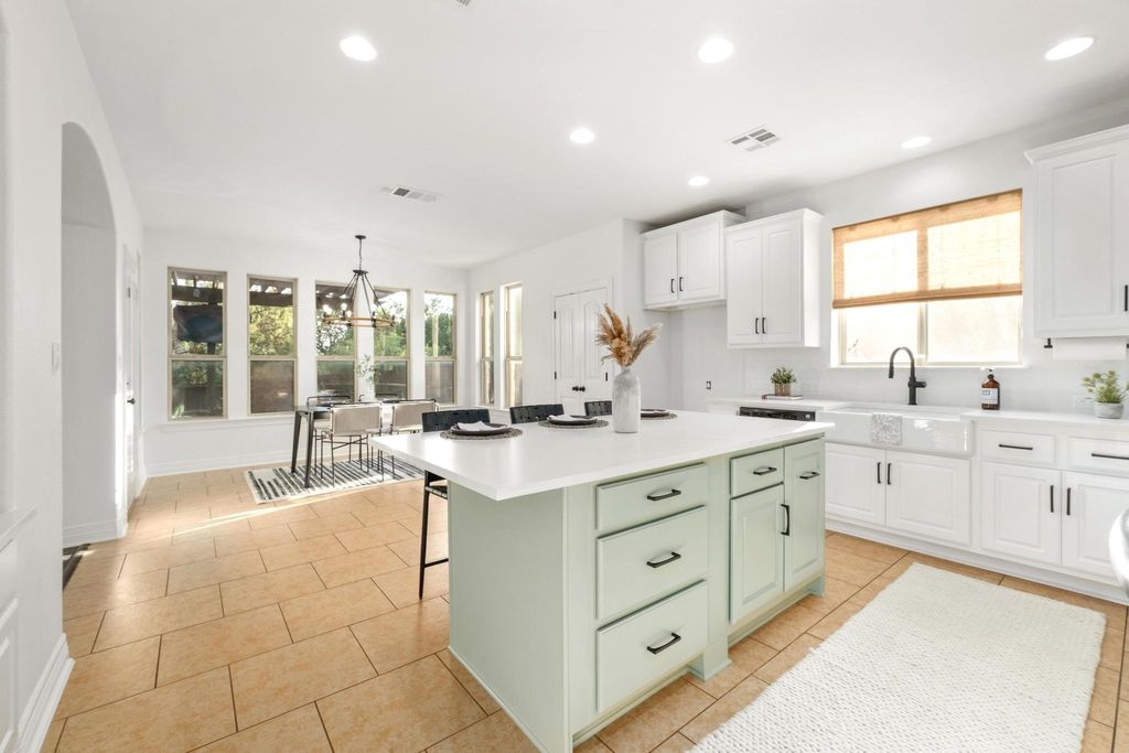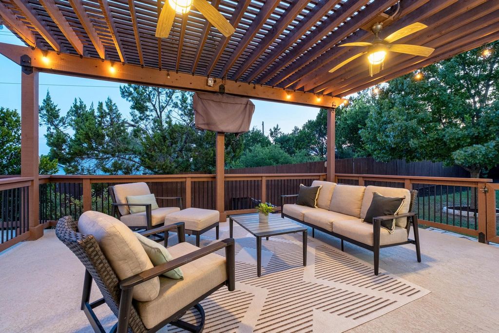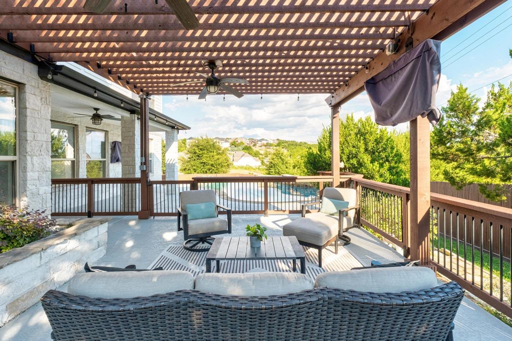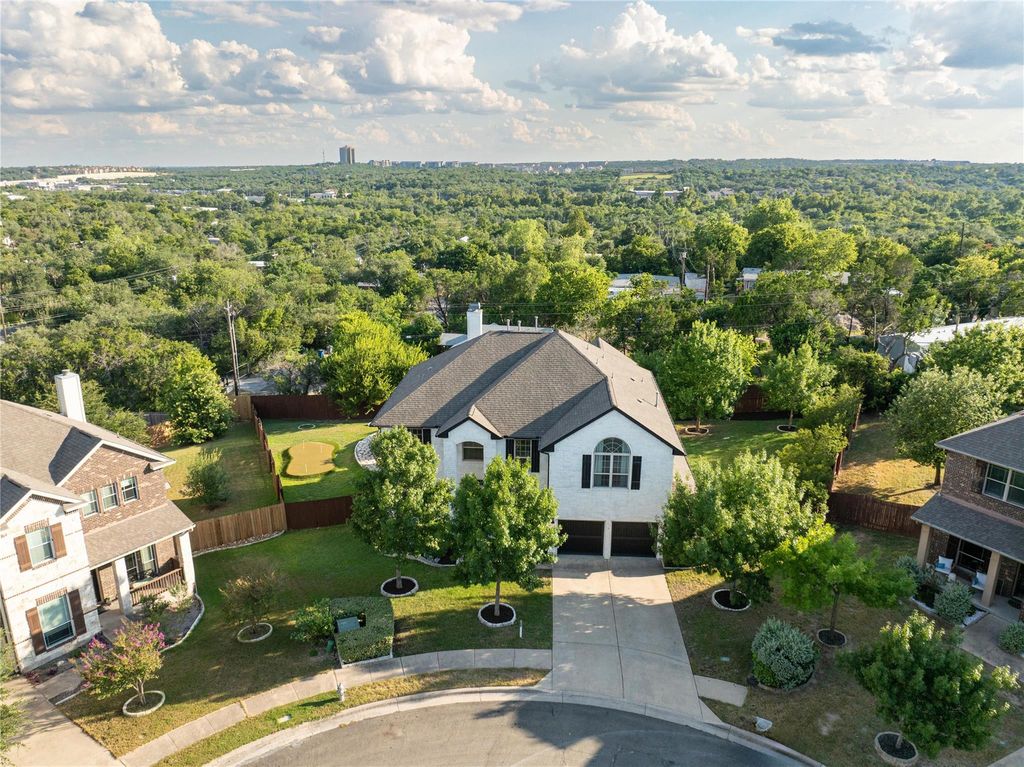 Stunning 5-Bedroom Retreat with Pool, Putting Green, and Designer Updates in beautiful Lantana. Kick your shoes off, and enjoy this thoughtfully updated, and impeccably maintained home overlooking the end of a quiet cul-de-sac. You'll find charm, warmth, and entertainment all packed into one. Downstairs, you'll find a bedroom + full bath as well as a dedicated office, and dining room. Upstairs is the primary suite, the additional 3 bedrooms, 3 bathrooms, plus a versatile bonus room that can serve as a media room, playroom, or even a sixth bedroom (it has a closet!). The heart of the home is the freshly updated kitchen"”featuring new countertops, backsplash, and island, "”all flowing seamlessly into the sun-kissed living room. Step outside to your private resort-style backyard, complete with a sparkling pool featuring a stone waterfall, putting green, gas BBQ area, and a large pergola w/ seating area and TV -- this home is well equipped for year-round entertaining. For the storage-obsessed, you'll love the upgraded garage featuring custom floor-to-ceiling cabinets, overhead shelving units, new garage doors, and workshop area make the space as beautiful as it is functional. Located just a a few minutes from top rated schools -- Regents, Saint Andrews, and Saint Michaels, as well as Barton Creek Country Club, and delicious eateries and coffee shops, this house is a gem!