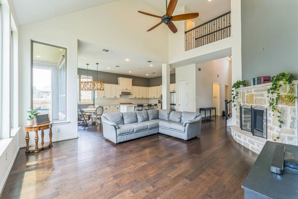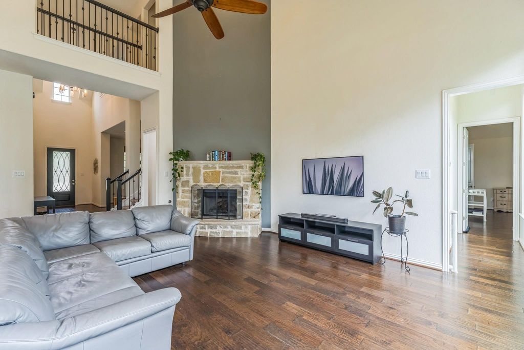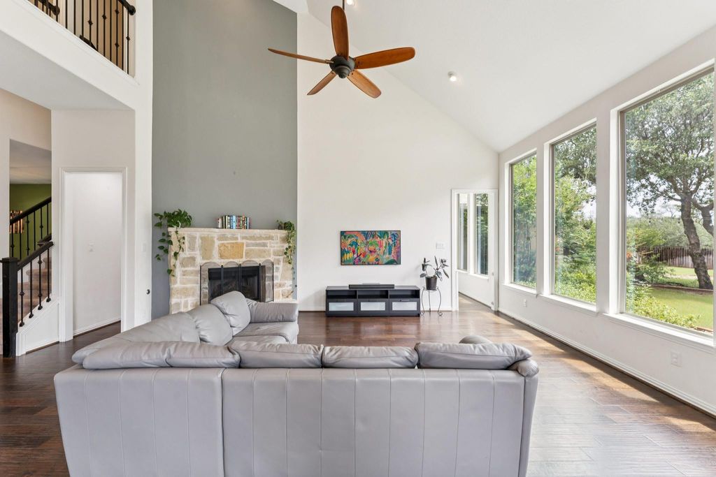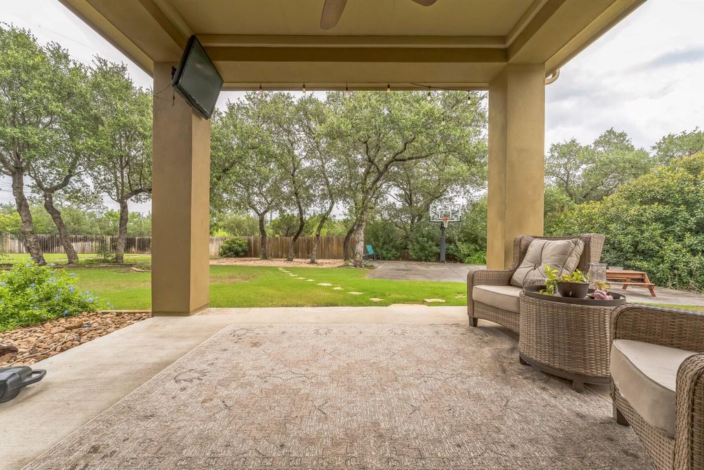 Stunning Highland-designed home nestled at the quiet end of a culdesac peninsula. Boasting 5 bedrooms, 4 baths, and over 4,000 sq ft across two levels, this home combines function and luxury. The main floor offers soaring ceilings, designer lighting, a stone gas fireplace, a bright white kitchen with shaker cabinets, quartz counters, stainless appliances, and a walk-in pantry. A spa-like primary suite features dual vanities, a soaking tub, walk-in shower, and generous closet space. A guest bedroom and office complete the main level. Upstairs, find a large game room, media room (projector & screen convey), and three bedrooms with walk-in closets. The expansive backyard includes a covered patio, half basketball court, and greenbelt views. Residents enjoy Lakeside at Tissera's private beach, pool & pavilion, playground, volleyball court, miles of trails, and Lake Travis boat launch. Zoned to Lago Vista schools.