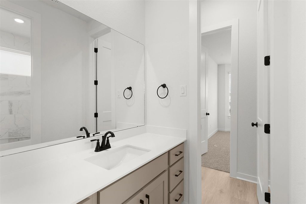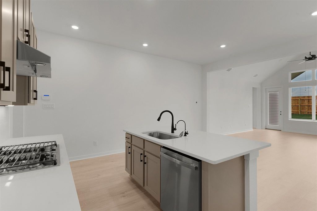 MOVE IN READY | 3 Beds | 2 Baths | Flex Room | 1-Story | Oversized 2-Car Garage | 1,931 Sq Ft | Meet the Adalynn"”the one-story cutie that proves big style comes in the perfect size. With 3 bedrooms, 2 baths, and a flex room that adapts to your life stage (playroom? Peloton zone? Home office?), this home is all about options without the overwhelm. Step inside to a welcoming foyer that leads to a front bedroom with walk-in closet and a full bath that also opens to the hallway and flex space. Bedroom 2 is tucked on the other side of the flex room with its own walk-in closet"”perfect for siblings who need a little space or guests who need a lot. The heart of the home is the open-concept living area, where a vaulted ceiling and big windows flood the family room with light. The kitchen overlooks it all with a center island for snacks, homework, and wine nights, plus quartz countertops, built-in appliances, a roomy walk-in pantry, and shaker cabinets with matte black hardware. Bonus: 12" LED over/under cabinet lighting so your kitchen looks just as good after dark. The primary suite sits privately at the back of the home with tray ceilings, large windows, and a spa-like bath featuring double vanities, linen storage, and a huge walk-in closet that's ready for all the seasonal wardrobe hauls. Extra perks? A double pull-out trash can in the kitchen (life-changing), black-framed windows for modern curb appeal, an oversized 2-car garage, exterior coach lighting, and stylish finishes with LVP, tile, and carpet throughout. And yes"”the covered outdoor living area is just waiting for twinkle lights and patio hangs. The Adalynn is move-in ready"”your new chapter starts here. Visit our brand-new Blackhawk models and ask about our current buyer incentives!