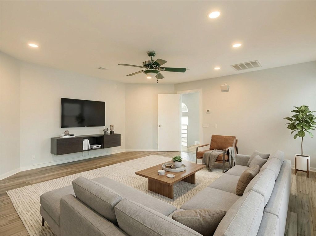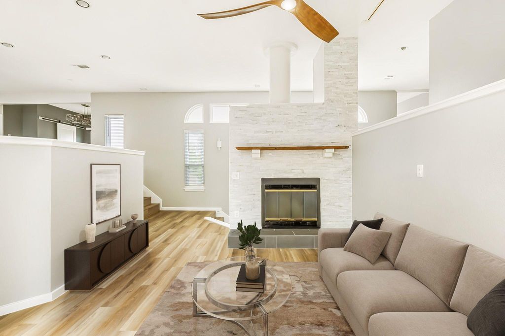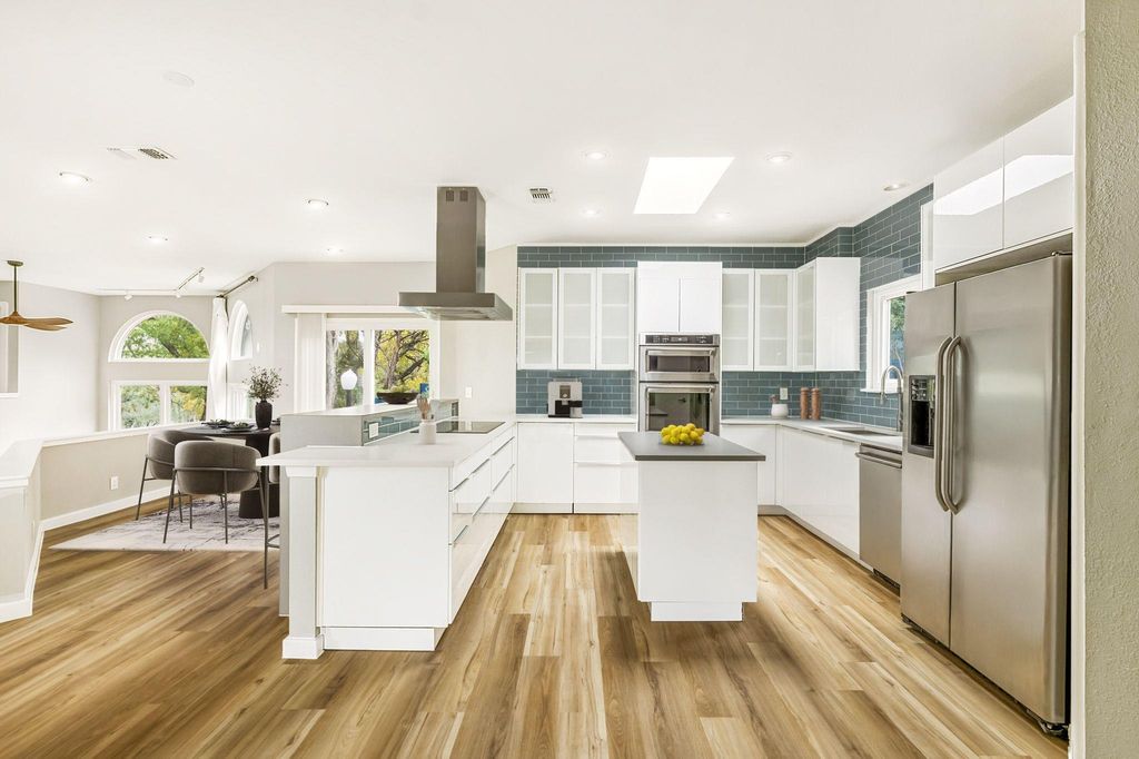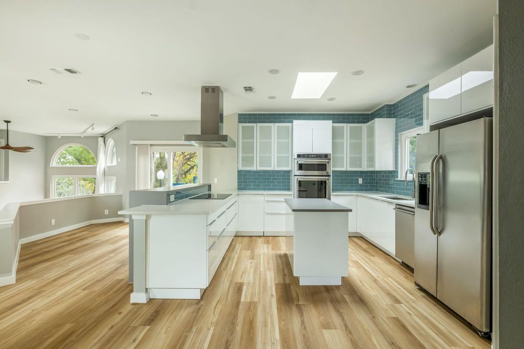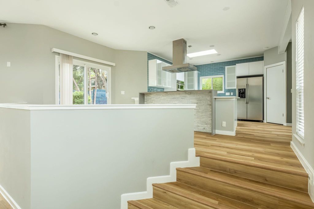 Nestled along one of Old Lakeway's most scenic tree-lined streets, this reimagined multi-level home blends modern comfort with Hill Country charm. The bright, open layout features soaring ceilings, abundant natural light, and brand-new luxury vinyl flooring throughout. The kitchen is beautifully appointed with quartz countertops, a Thermador induction cooktop, and stainless steel appliances that flow seamlessly into expansive dining and living areas. Designed with versatility in mind, the home offers two spacious living rooms, perfect for entertaining, relaxing, or creating separate spaces for work and leisure. Built-in speakers throughout enhance the experience for movie nights, gatherings, or quiet evenings at home. Recent updates include both HVAC systems fully replaced in 2025, a freshly repainted deck, new interior paint, and a backyard designed for fun with room to play and unwind. The floor plan also features generous bedrooms and a large three-car garage. Energy-efficient windows and a roof installed in 2017 provide lasting value and peace of mind. Ideally located near Lake Travis, marinas, hiking trails, and Lakeway's favorite restaurants and amenities, 304 Palos Verdes Dr offers the perfect balance of comfort, character, and outdoor living in a prime Hill Country setting.