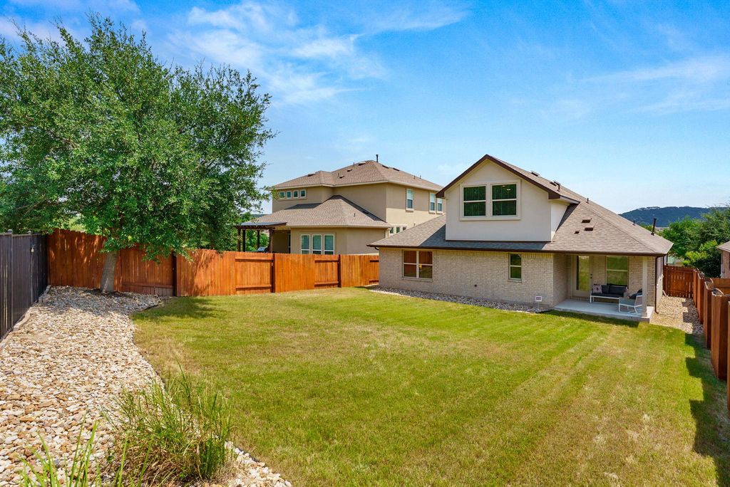 Set on a cul-de-sac that backs to a greenbelt, this Sweetwater home combines smart design with Hill Country surroundings. The layout lives like a one-story, offering 3 bedrooms, 2 full baths, and a private office on the main level. Upstairs, a large game room with another full bath gives you the flexibility to create a 4th bedroom, media room, or guest suite"”whatever suits your needs. The open-concept living area is bright and inviting, anchored by a spacious kitchen with an oversized island, abundant cabinetry, and plenty of prep space for cooking or entertaining. Modern vinyl plank flooring runs throughout the home"”no carpet anywhere"”for a sleek, low-maintenance finish. Life in Sweetwater means more than just a beautiful home. The community offers two resort-style pools, a neighborhood gym, pickleball, basketball, and sand volleyball courts, plus a putting green, dog park, and miles of scenic hiking and biking trails. You'll also enjoy planned social events, and a location close to golf courses, shopping, dining, and Lake Travis itself"”all within an easy drive of downtown Austin and the airport. Home is currently zoned for Rough Hollow Elementary. Buyer to verify any future zoning with Lake Travis ISD.