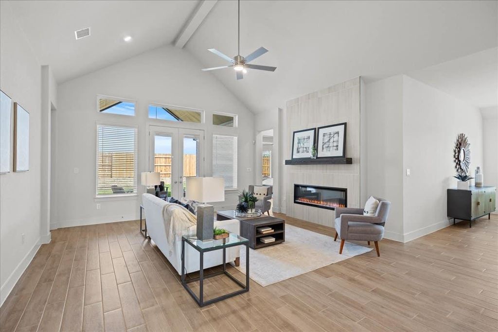 New Construction | 4 Beds | 3 Baths | Game Room | 1-Story | 3-Car Garage | 2,700 Sq Ft | Covered Outdoor Living | Ready December The Wyatt is where everyday living meets Pinterest-board goals. With 4 bedrooms, 3 baths, a game room, and a 3-car garage, this one-story stunner packs in smart design and gorgeous details across 2,700 sq ft. Step into the foyer and find a front bedroom with a walk-in closet next to a full bath and storage closet"”perfect for guests or teens. Down the hall, the game room with its own closet anchors Bedrooms 3 and 4, each with walk-ins, all sharing a full bath. The family room steals the show with soaring beamed ceilings, a 60" electric fireplace, and double doors opening to a vaulted covered patio with a gas drop for grilling season. The passthrough kitchen is built for hosting with a massive island, quartz counters, shaker cabinets with 12" LED under/over lighting, built-in appliances, and a huge walk-in pantry. A sunny dining area ties it all together. The primary suite is pure retreat mode: cathedral ceilings, bay windows overlooking the backyard, and a spa-worthy ensuite with dual vanities, soaking tub, oversized shower, and a giant closet. Extra perks? Black-framed windows, designer finishes, and VP, tile, and carpet throughout. The Wyatt isn't just a home"”it's your lifestyle upgrade waiting for move-in this December. Visit our model and ask about current buyer incentives!