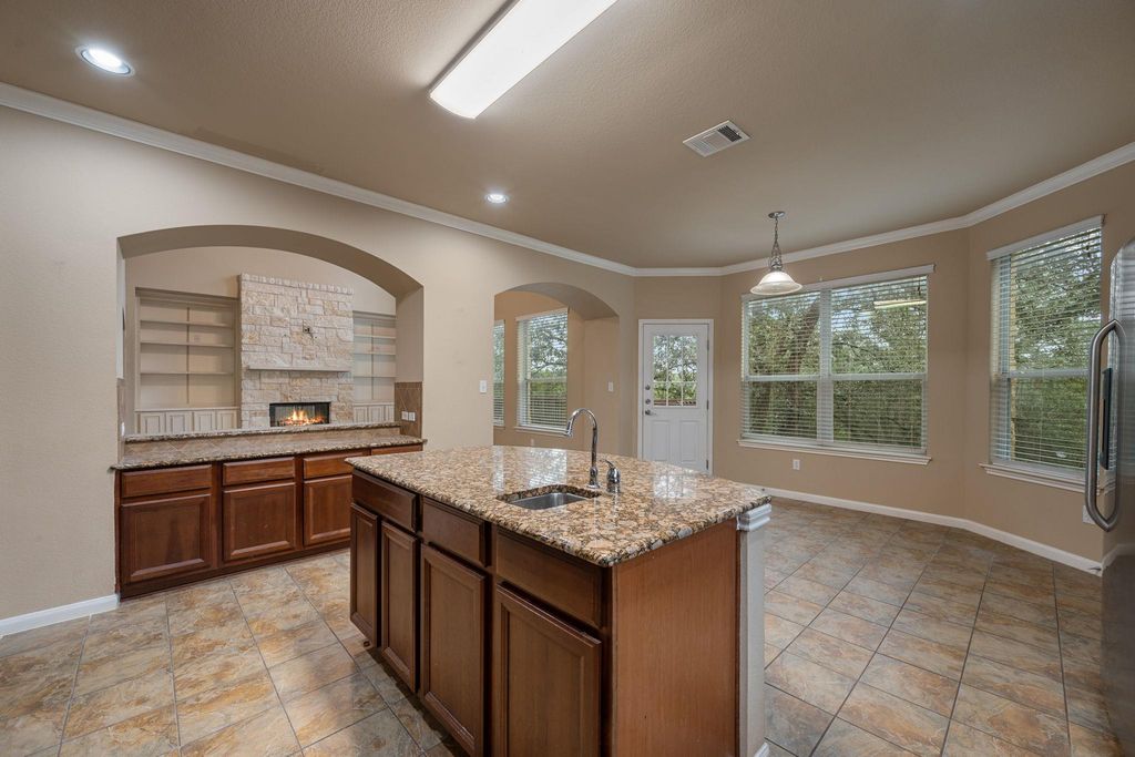 Come see this spacious two-story home offering five bedrooms and three full baths! This inviting residence blends comfort, versatility, and abundant natural light. Make this home your own with a $2,000 'redecorating allowance' for an acceptable offer. The first floor features a full bath and a guest bedroom (or office), plus two formal rooms at the front of the home. The light-filled open floorplan features multiple living and dining areas, soaring ceilings, beautiful archways, crown molding throughout, and thoughtfully designed built-ins that elevate both style and function. The kitchen is ideal for everyday cooking and entertaining with gas cooking, a center island, a breakfast bar, a breakfast area, and abundant counter space. The downstairs guest room/office has its own fireplace, and is next to the full bath. The primary bedroom is tucked upstairs along with the additional bedrooms for separation and convenience. One of the upstairs bedrooms has french doors to its own private deck. An upstairs loft (open to the family room below) has many flexible uses.The huge backyard is shaded by mature, well-maintained trees and backs to an open green field with no rear neighbors, creating a peaceful setting where deer occasionally wander through. The big back deck is an entertainer's dream. Located in a highly desirable, family-oriented master-planned community of West Cypress Hills, the home is convenient to highly rated schools and a well-equipped community center. Wide sidewalks and scenic views of the surrounding hills make the area exceptionally walkable. Only 15 minutes to Hill Country Galleria, rivers, lakes, golf courses, hiking trails, and endless outdoor activities, this home offers the perfect blend of comfort, convenience, and Hill Country living. An easy commute to Tesla Gigafactory/HQ, Apple, Amazon and all the major employers. Quick and easy access to the airport, downtown, UT and all that the Austin metro has to offer.