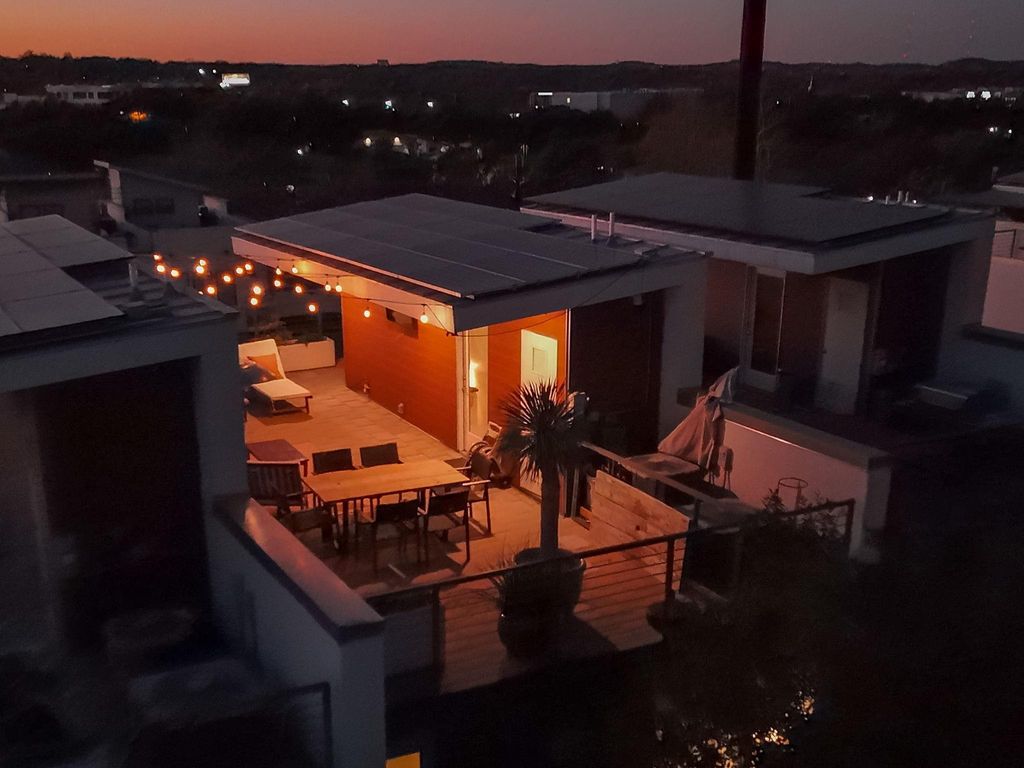 Experience refined urban living in this contemporary 3-bedroom, 3.5-bath residence perfectly positioned in Austin's sought-after Bouldin Creek. Spanning 2,060 sq ft, this multi-level home combines sleek design, energy efficiency, and versatility for the ultimate modern lifestyle. The open-concept second level features polished concrete floors and a bright living space framed by floor-to-ceiling windows. The gourmet kitchen impresses with quartz countertops, an oversized island, stainless steel appliances, gas cooking, and premium cabinetry"”ideal for both entertaining and everyday living. The primary suite offers a peaceful retreat with a spa-inspired bath, soaking tub, dual vanities, and a glass-enclosed shower. A secondary bedroom, full bath, and laundry area complete the third level. On the first level, a private office or bedroom"”zoned for commercial use"”features street access and a full en suite bath, making it perfect for a live/work setup. Enjoy Austin's skyline and sunsets from the expansive rooftop terrace with wet bar"”ideal for relaxing or entertaining. Additional highlights include solar panels, Google Fiber wiring, covered parking, and a 1.5-car garage with extra storage. Residents enjoy access to South 5th community amenities including a pool, hot tub, and beautifully maintained grounds. HOA dues cover water, master insurance, and exterior maintenance. Just minutes from South Congress, South 1st, Zilker Park, Barton Springs, and Lady Bird Lake, this home offers the best of Austin's dining, entertainment, and outdoor lifestyle. Modern elegance, thoughtful design, and prime location"”this Bouldin Creek home truly has it all.
